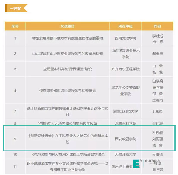 在“第二届全国应用型课程改革实践征文大赛”中,来自全国183所高校的1068篇文章,历时4个月,经过三轮专家评审和系统查重,鸭脖信息工程学院杜晓春、刘丽丽、孟博老师撰写的《创新设计思维》在工科专业人才培养中的创新与实践》论文获得国家级三等奖,会计学院张梅、艾珺老师撰写的《基于财务应用能力培养的《公司财务》课程改革实施路径研究》论文获得国家级优秀奖。