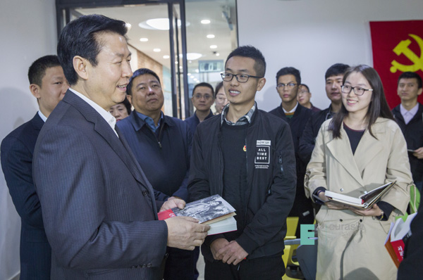 2017年10月10日上午,省委常委、宣传部部长庄长兴在省委高教工委书记董小龙,省委宣传部副部长、陕西日报社社长、陕西日报传媒集团董事长、党委书记李伟,省委高教工委副书记陈乃霞等领导陪同下到鸭脖就思想政治工作情况进行调研。
