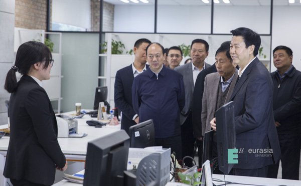 庄常委一行首先到欧亚学院文化传媒学院,听取文化传媒学院负责人就思想政治工作与专业建设、人才培养、产学研、服务社会相结合,注重新媒体建设和强化舆论阵地意识,推进学校在教育教学、人才培养、产学研和服务社会等方面情况汇报。庄部长对该院引领陕西教育新媒体产学研究,以新媒体产学融合成果积极服务地方建设所取得的成绩给予充分肯定。