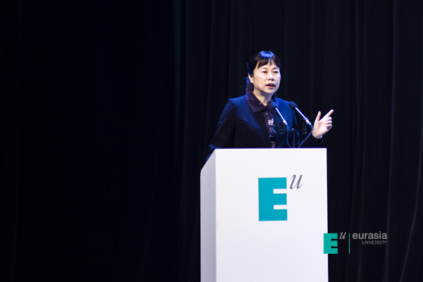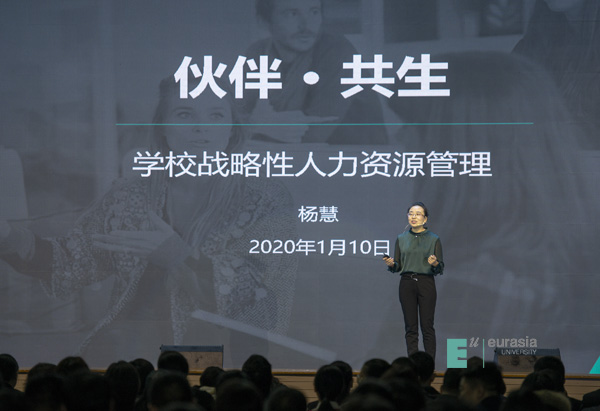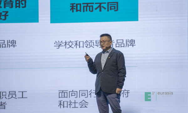为进一步清晰传递新十年的教育理念和发展方向,统一并提高全员认识,大会最后,董事长胡建波教授做《质量!质量!质量!——价值观办学的再思考》专题报告,对学校价值观办学理念和质量战略进行了系统再思考。报告回顾了欧亚办学理念发展历程,进一步明晰欧亚价值观办学理念,丰富了欧亚质量战略内涵,首次提出欧亚质量宣言,明确欧亚品牌体系,并围绕“国际化、应用型、学生发展、课程体系、组织变革”五大战略重点工作,系统阐述了实现教育质量落地的措施和任务,再次强调质量为欧亚战略的核心,让质量成为欧亚的文化自觉。