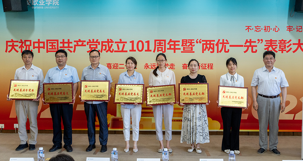 (图三)校党委书记于孟晨同志为获得先进基层党组织代表颁奖