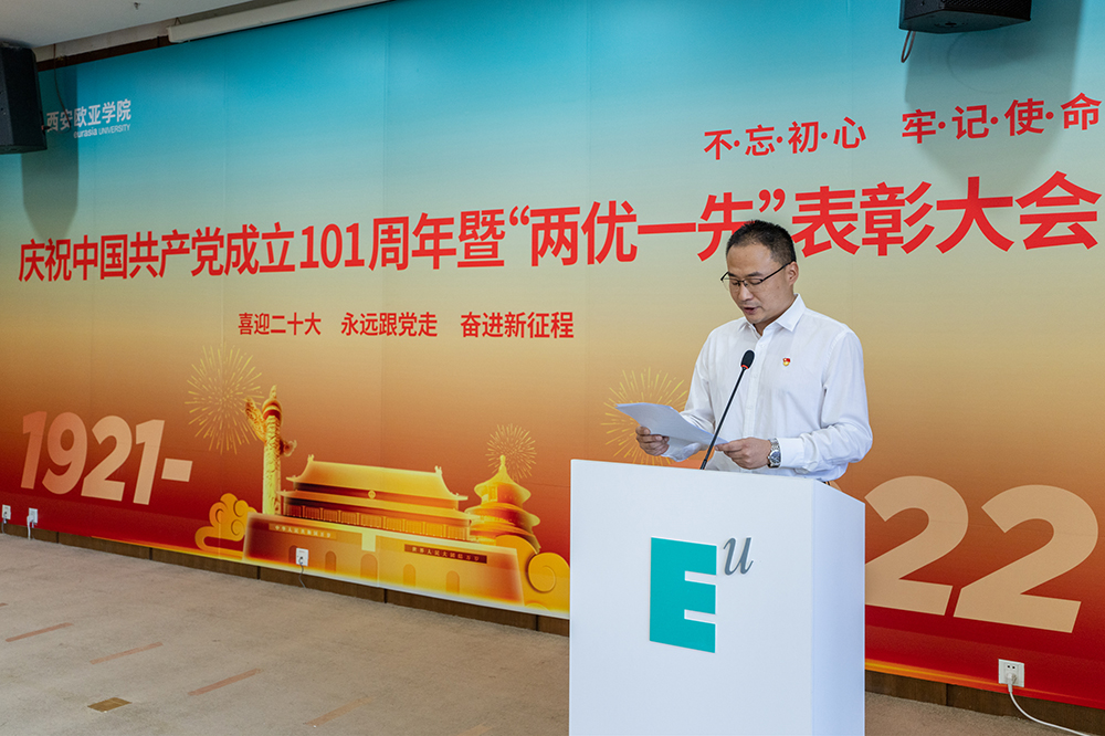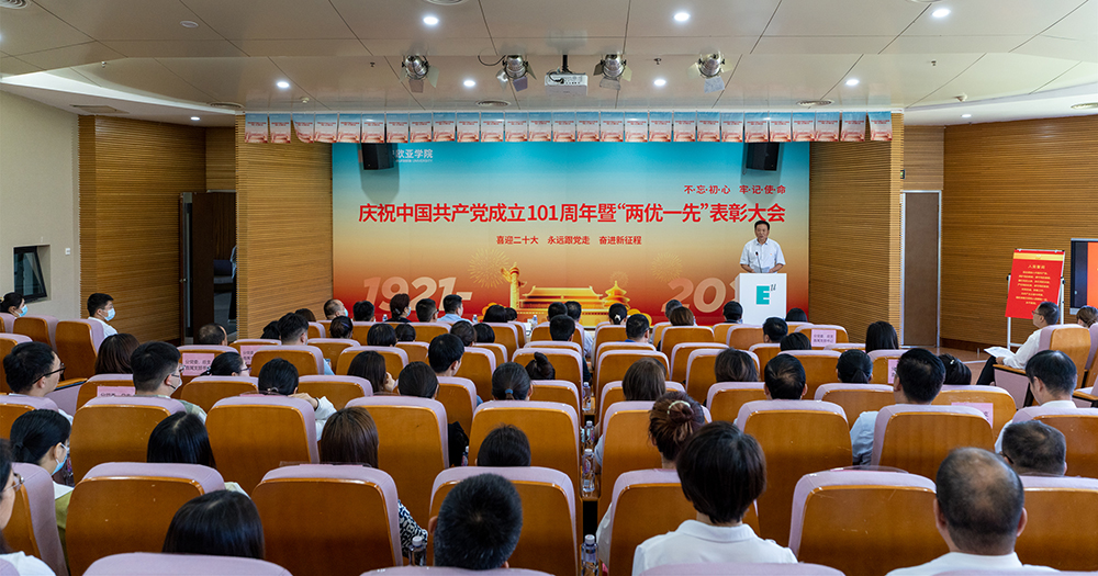 6月29日,鸭脖在图书馆学术报告厅举行庆祝中国共产党成立101周年暨“两优一先”表彰大会。大会由校党委副书记、纪委书记王志强同志主持。学校党政主要领导及优秀师生党员代表参加了大会。