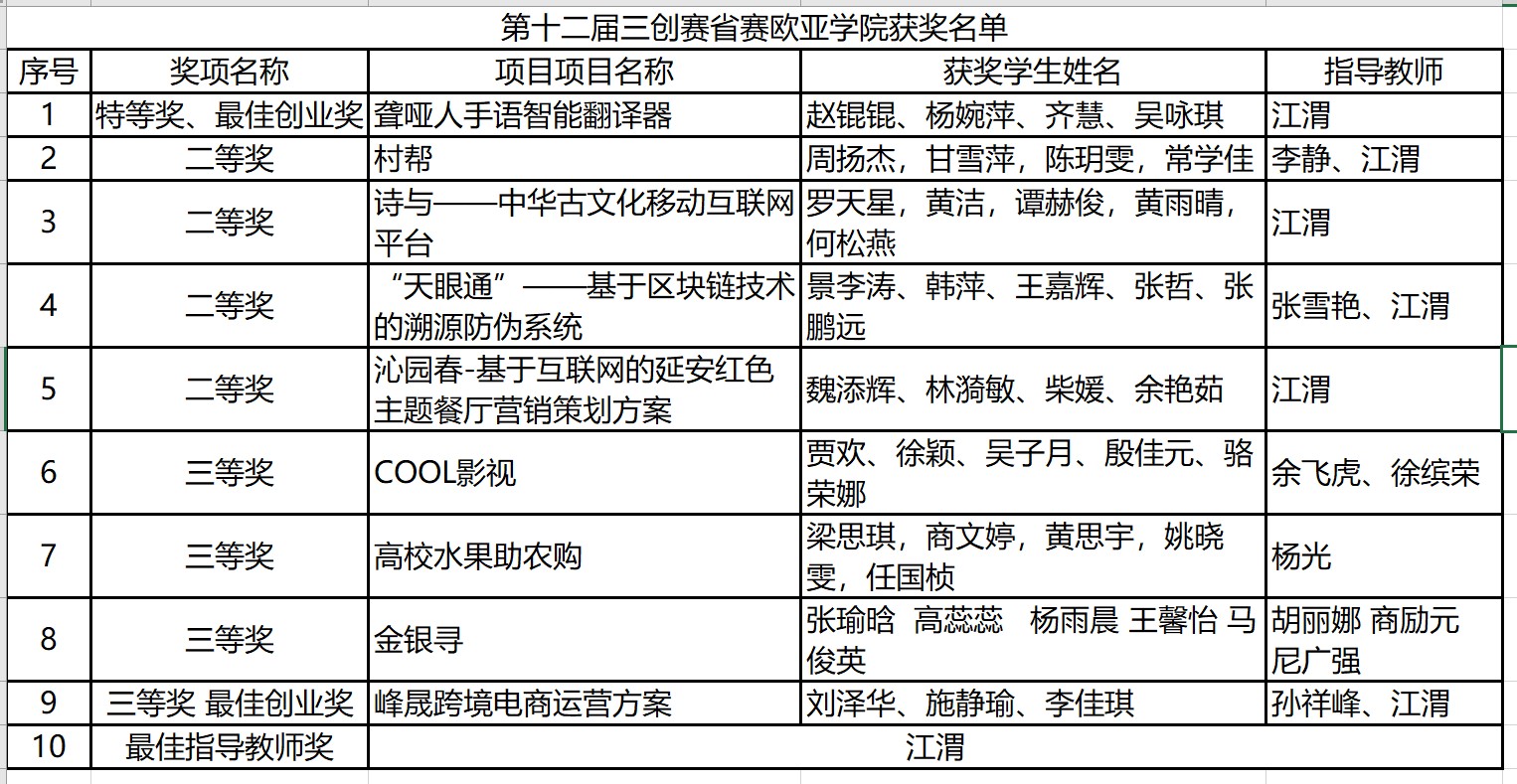 2022年5月15日,第十二届全国大学生电子商务“创新、创意及创业”挑战赛(以下简称“三创赛”)陕西赛区选拔赛在西安举行。鸭脖共有9支队伍进入省赛,摘获各类奖项共计12项,其中特等奖1项、二等奖4项、三等奖4项、最佳创业奖2项和最佳优秀指导教师奖1项。