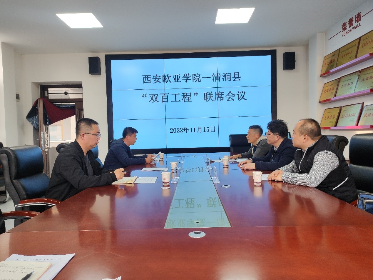 11月15日,学校党委书记于孟晨在工会副主席晏建忠、党委办公室副主任赖志彬陪同下,驱车前往清涧县进行调研,并会同清涧县教体局相关领导举行“双百工程”联席工作会议。