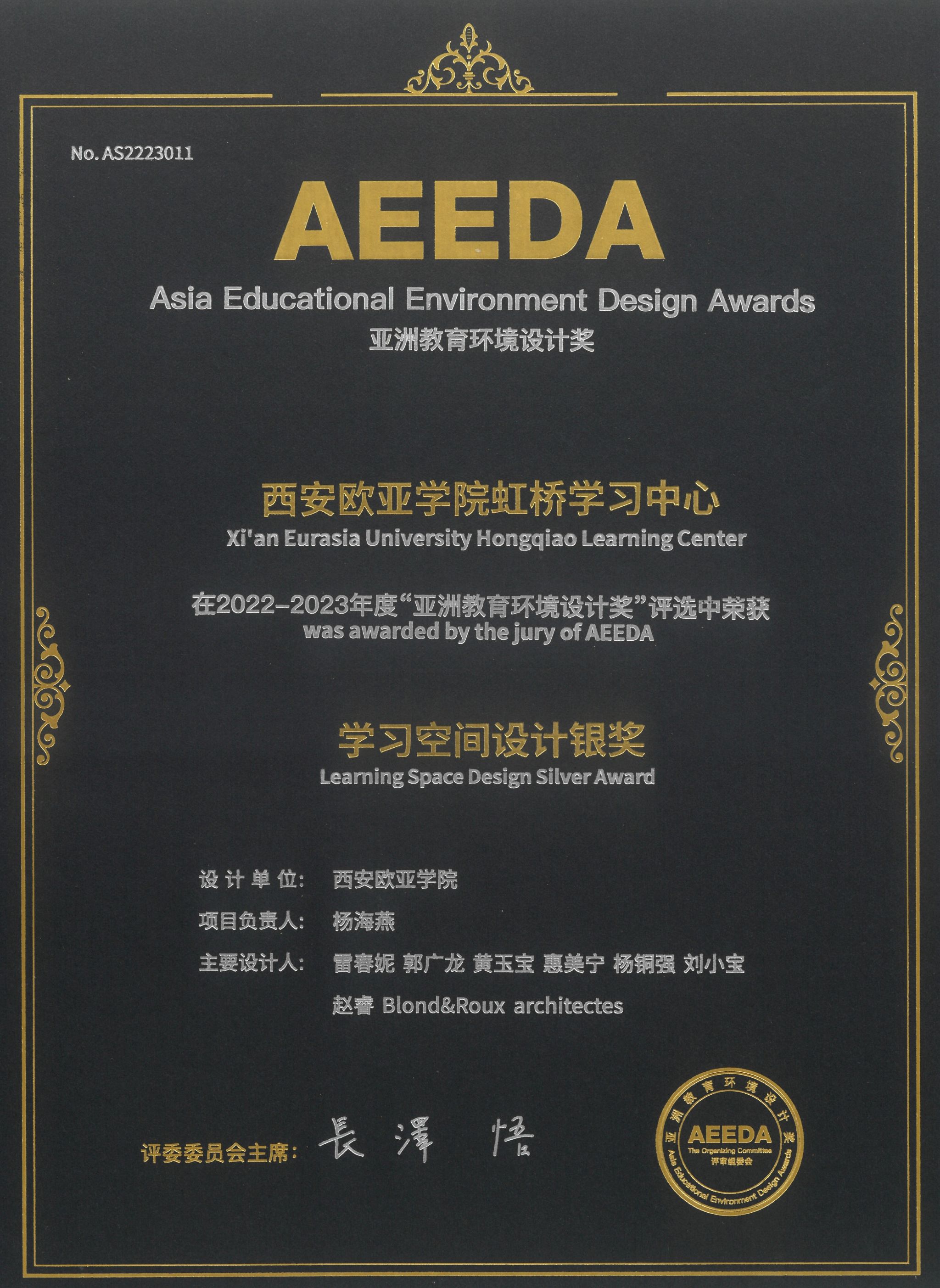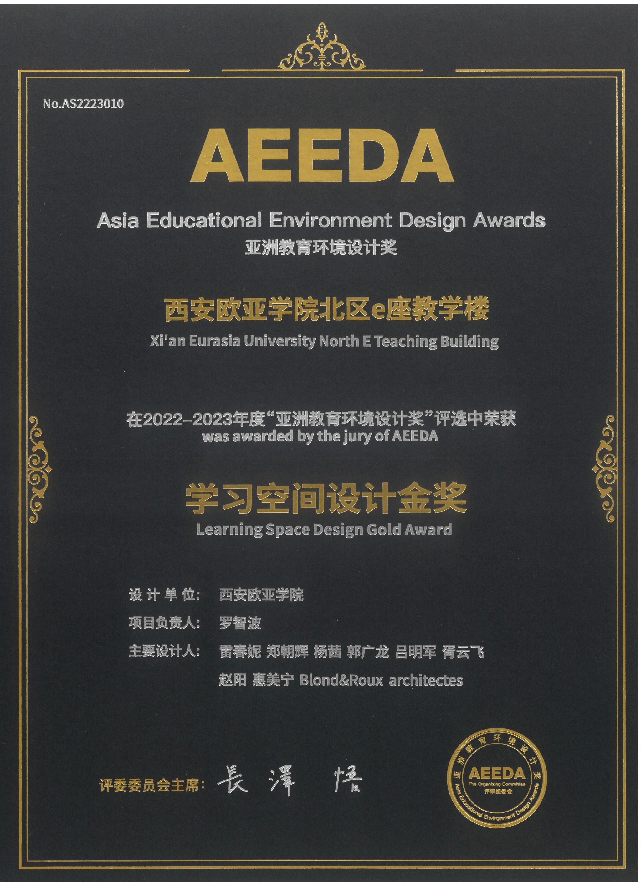 AEEDA亚洲教育环境设计奖是目前亚洲地区唯一针对教育环境设计设立的区域大奖,是北京中外友联建筑文化交流中心在举办9届教育设施设计国际论坛基础上(中小学6届,高等及职业教育1届,学前教育2届),于2022年10月提出并发起的,面向亚洲地区征集学前教育、基础教育、职业及高等教育校园建筑作品进行评选,致力于将其打造成集专业性、权威性、卓越影响力于一身的区域教育建筑专项大奖。评审团成员均是来自中国大陆、港澳台地区、日本、新加坡、印度、澳大利亚、美国等地的知名权威专家。评审团成员专业涵盖建筑设计、室内设计、教育学、心理学、人体工程学等多个学科,能够从多个角度对参赛作品进行客观、公正的评价。