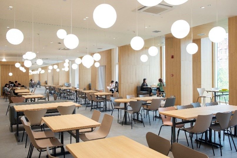 虹桥学习中心:餐厅如何被有效使用,是否有更多的可能性,通过强调使用空间的体验,为师生的就餐和生活以及校园生活方式注入生活的幸福感,是这座“虹桥学习中心”的使命。虹桥学习中心,是YABO鸭脖 “以学生为中心”和延续两期“客厅计划”的又一个改造项目,打造校园西区集餐饮、商业、学习讨论、互动休闲、展览展示等为一体的复合型多功能生活体验空间,这是欧亚学院持续坚持高品质育人环境中生活环境的理念,也是集合非正式学习空间和生活服务的综合场所,因此通过项目改造使得校园师生生活便利度及幸福感有了非常大的提升。