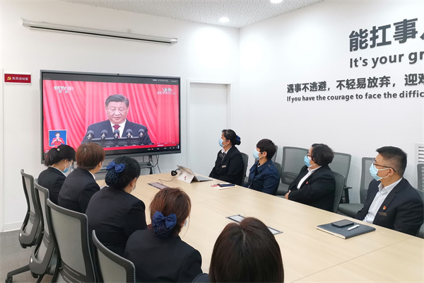 师生纷纷表示,党的二十大是在全党全国各族人民迈上全面建设社会主义现代化国家新征程、向第二个百年奋斗目标进军的关键时刻召开的一次十分重要的大会。习近平总书记作的报告,全面总结了过去五年的工作和新时代十年的伟大变革,科学谋划未来五年乃至更长时期党和国家事业发展的目标任务和大政方针,提出一系列新思路、新战略、新举措,令人倍感振奋和鼓舞。我们要更加深刻领悟“两个确立”的决定性意义,增强“四个意识”、坚定“四个自信”、做到“两个维护”,全面贯彻习近平新时代中国特色社会主义思想,踔厉奋发、勇毅前行,为全面建设社会主义现代化国家、全面推进中华民族伟大复兴而团结奋斗。