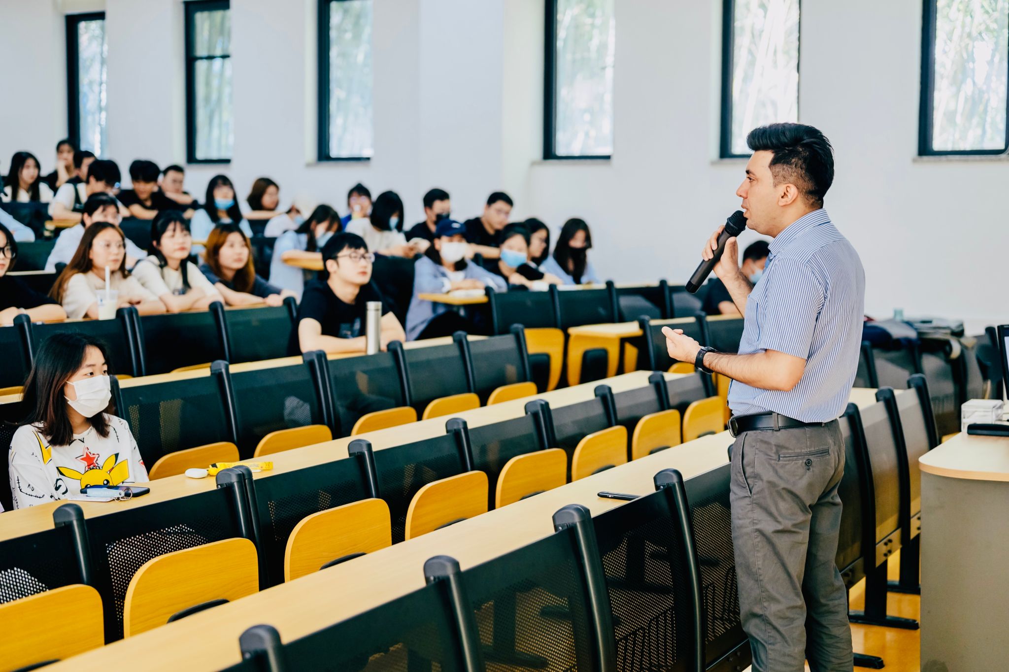 “来到欧亚后,这里就像一个温暖的大家庭。”Sohaib在这样的氛围中很快便融入其中。他积极参与各种教师会议,与同事们合作制定课程,并经常组织学术咨询与学生们交流互动、探讨问题。在教学上,Sohaib一直秉持着严谨治学的态度和欧亚“以学生为中心”、“国际化、应用型、新体验”的教学理念: