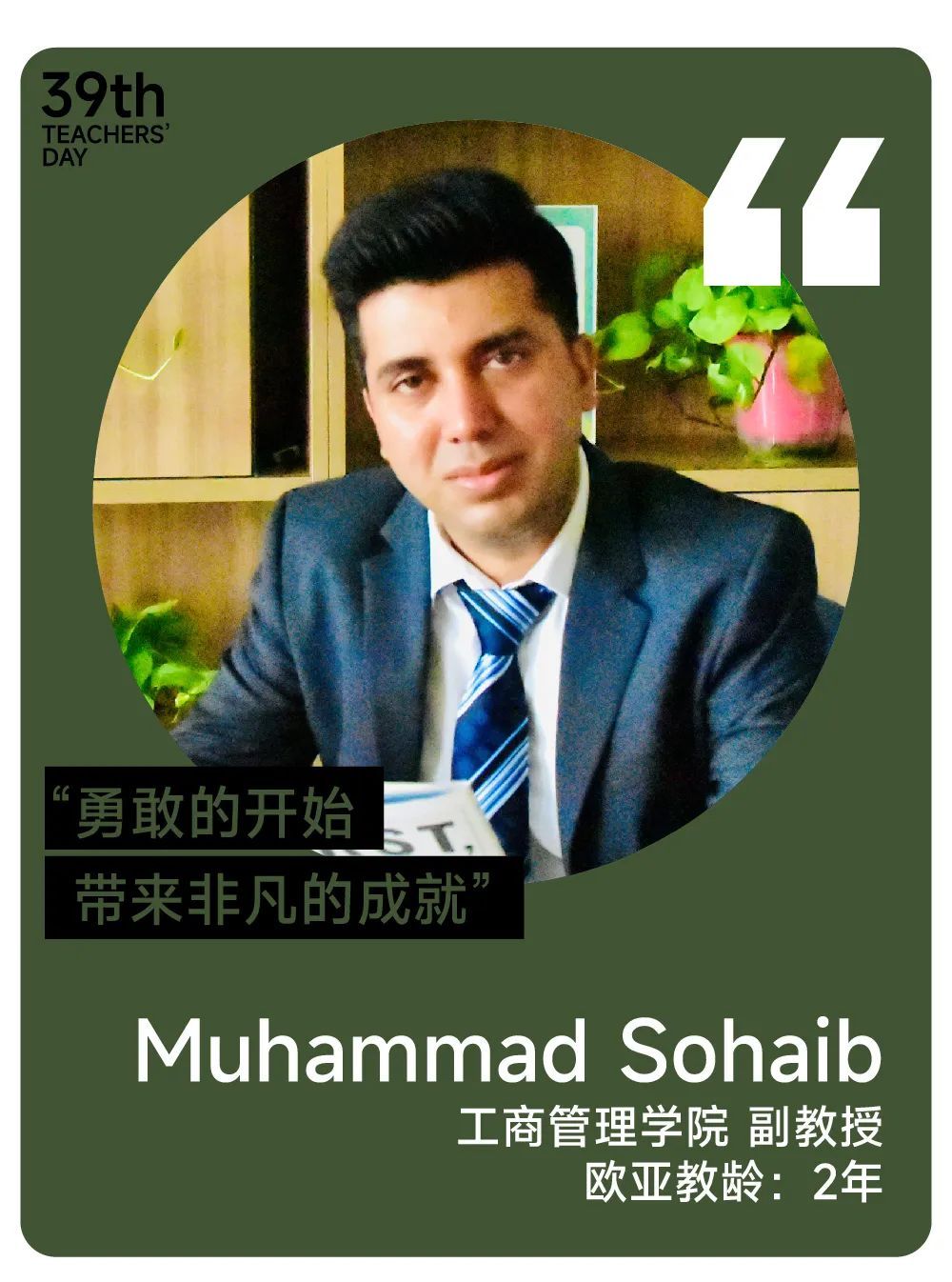 2021年来到欧亚学院的Sohaib, 如今,已经是他在欧亚度过的第三个教师节了。来自巴基斯坦的他,不仅成为了一名地道的“欧亚通”,还收获了一批又一批可爱的学生,实现了自己的教育理想。而他对欧亚的热爱也在与日俱增。