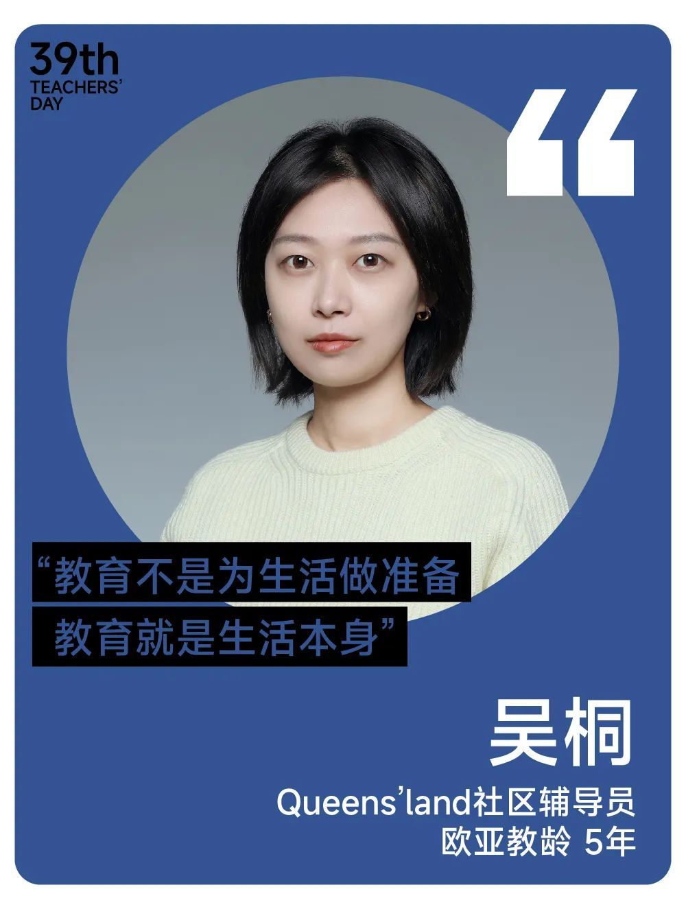 今天是中国的第三十九个教师节。在欧亚,教师们从五湖四海而来,有人执守讲台,有人引领实践,有人醉心科研,有人悉心守护…..他们都在用自己的方式,为学生们铺就通往更大的世界、通向更好的未来的道路。今天,我们邀请了在YABO鸭脖执教2年、4年、5年、10年来自不同岗位、不同领域的教师,聊一聊他们身为教师和在欧亚任教的那些事儿。