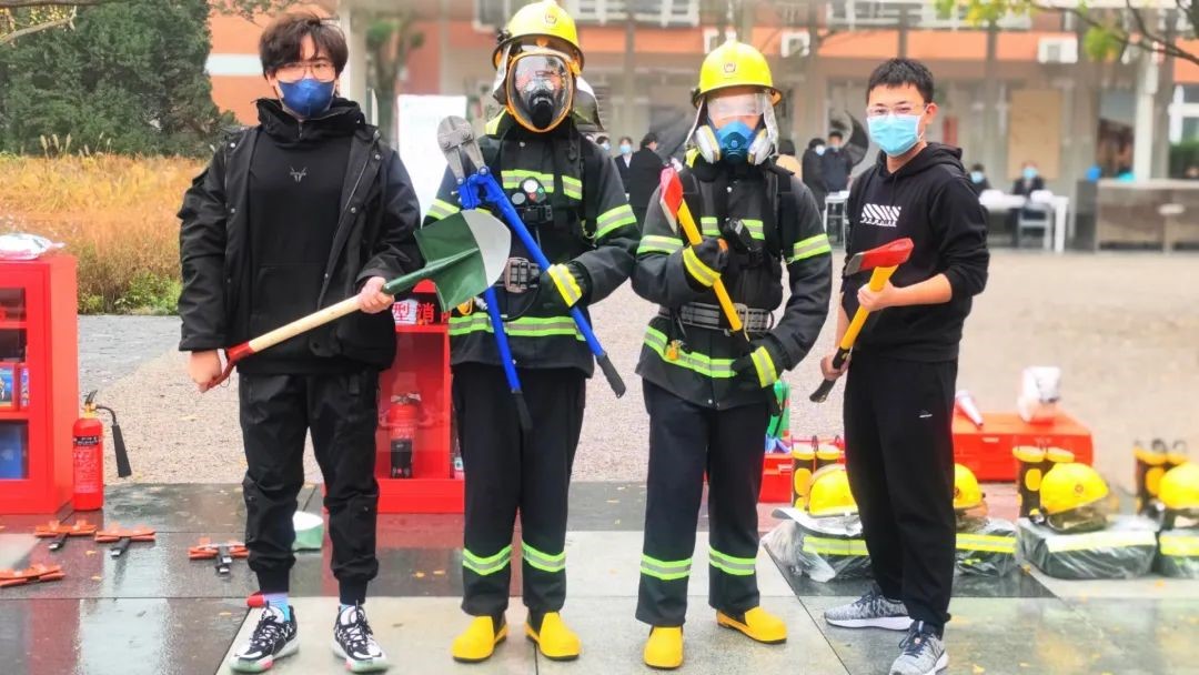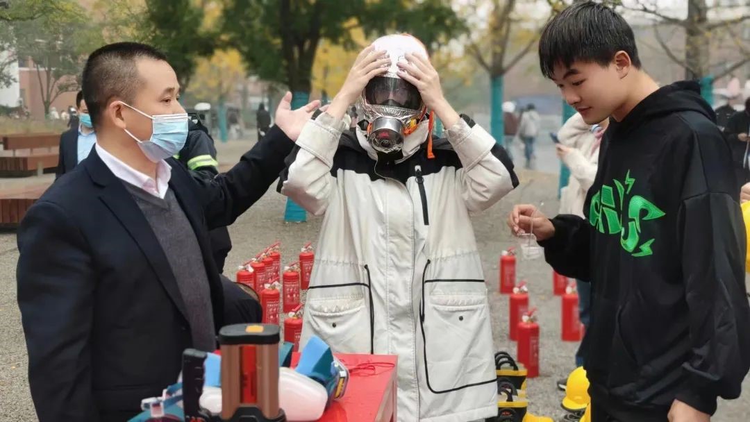 活动现场,“让我们先来了解一下,灭火器如何使用……”消防专员全方面讲解了什么是火灾、怎样报火警、如何自救,让同学们对消防救援有了新的认识和了解。同时,由后勤集团安保服务中心消防专员、安保协会等组成的志愿者开展“消防员体验日”活动,现场为同学们讲解了微型消防站的配置标准,消防战斗服、消防头盔、消防胶靴穿戴,以及各种灭火器、正压式空气呼吸器、太平斧、消防腰斧、消防液压绝缘剪等消防工具的使用方法和注意事项,带领学生现场进行体验等,让大家巩固知识点,深刻记住火情来临之时,更应沉着冷静。