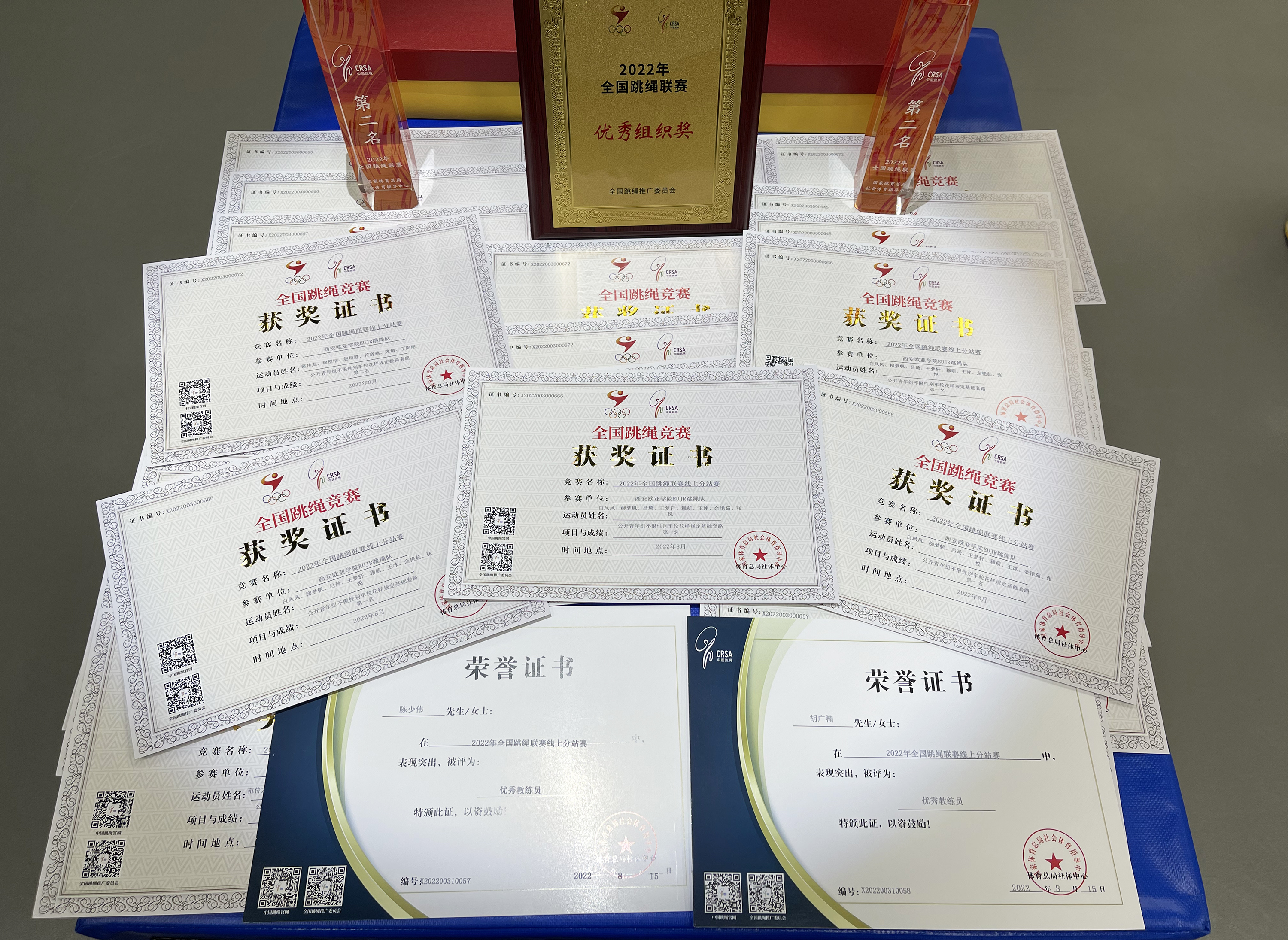 近日,2022年全国跳绳联赛线上分站赛发布成绩公告,鸭脖EUJR跳绳队在个人花样集体、车轮花样集体等多个单项斩获1项冠军、2项亚军、1项第四名的佳绩,并荣获全国跳绳联赛“优秀组织奖”。