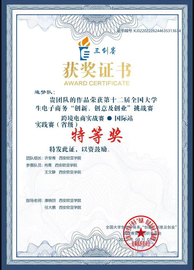 指导教师 康晓丽:得知第十二届三创赛首次设置了“跨境电商实战赛道”时我非常激动,因为这条赛道与我们的专业契合度非常高,能够将我们的专业课《跨境电商运营实务》充分运用于实践!这次竞赛取得好成绩是师生共同努力的结果,给了我很大的信心,在今后的工作中,我会继续以课程教学为主阵地,把教学工作和竞赛工作有机结合起来,真正做到以赛促学!