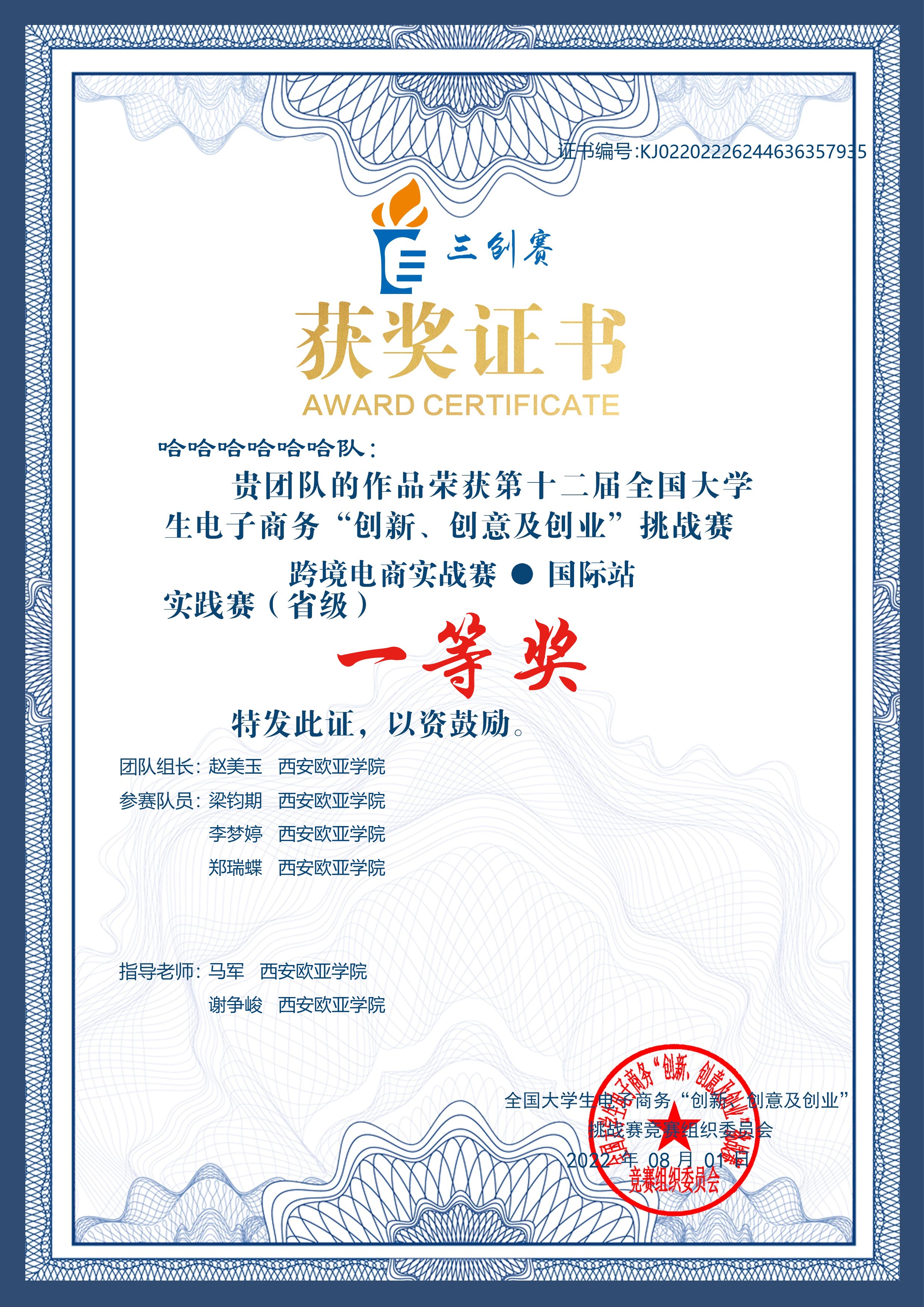 (图一)获奖证书