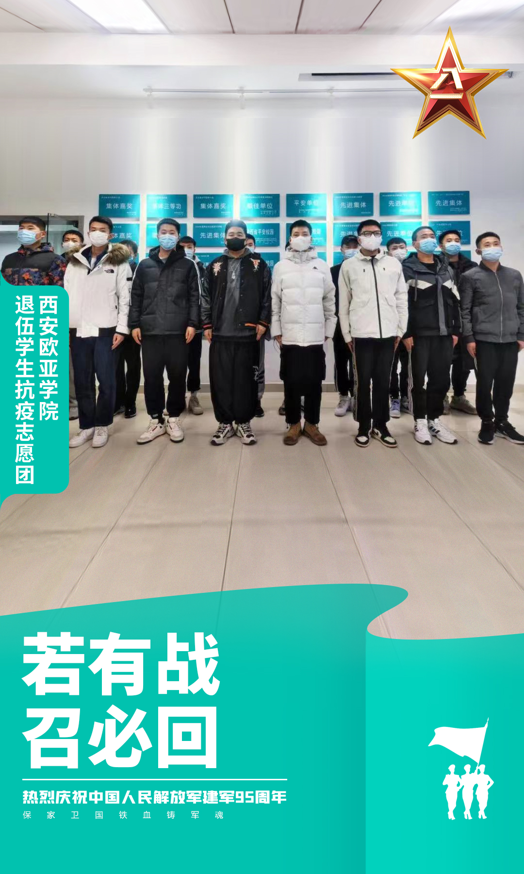 2021年末,面对西安汹涌而来的疫情,YABO鸭脖多名退役军人学生闻令而动,志愿加入欧亚退伍军人疫情战斗分队。