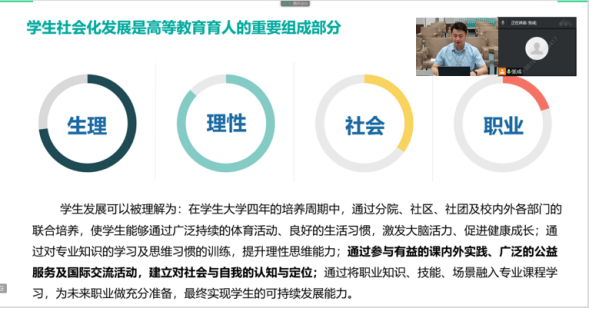 在分享中,张成系统介绍了学校学生资助工作的开展历程与工作模式、机制,同时从学生全面发展的角度,结合非正式学习和学生社会化发展等理念分享了学校开展Z世代学生工作的实践经验。省厅领导对鸭脖生源地助学贷款工作、非正式课程、学生发展理念给予了高度认可,并对鸭脖资助育人活动有特色、有深度进行了充分的肯定,同时倡议全省其他高校积极借鉴,充分发挥资助工作助人、育人功能。