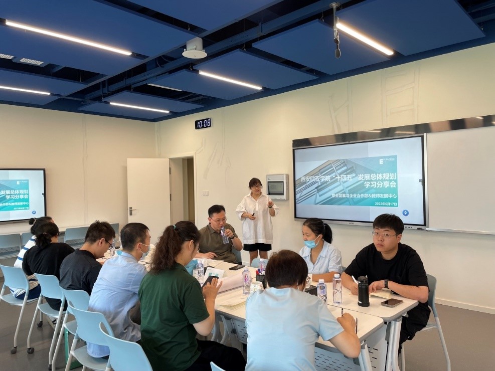 最后,三位部门领导对此次宣讲学习进行了深入总结,教师发展中心副主任许燕燕老师首先对赵健委员表示肯定,赵老师能够结合两个部门的业务,进行深度刨析,指导成员如何落地十四五规划;其次,我们无法改变问题,但是我们可以改变处理问题的态度,跳出固有思维,用开放的行动影响学生,希望我们能抱着开放、包容的自信心态,迎接一个一个开放办学的思路;第三,跨部门组队学习的形式非常难得,因为时间紧张,大家还没有完全打开思路,这种学习的形式应该保留,能让大家深刻理解、贯彻学校的每个政策;最后,教师在企业挂职的制度,能够更好的了解企业需求,从而带到学生课堂。让我们的教师走出去,把市场的需求带回来。