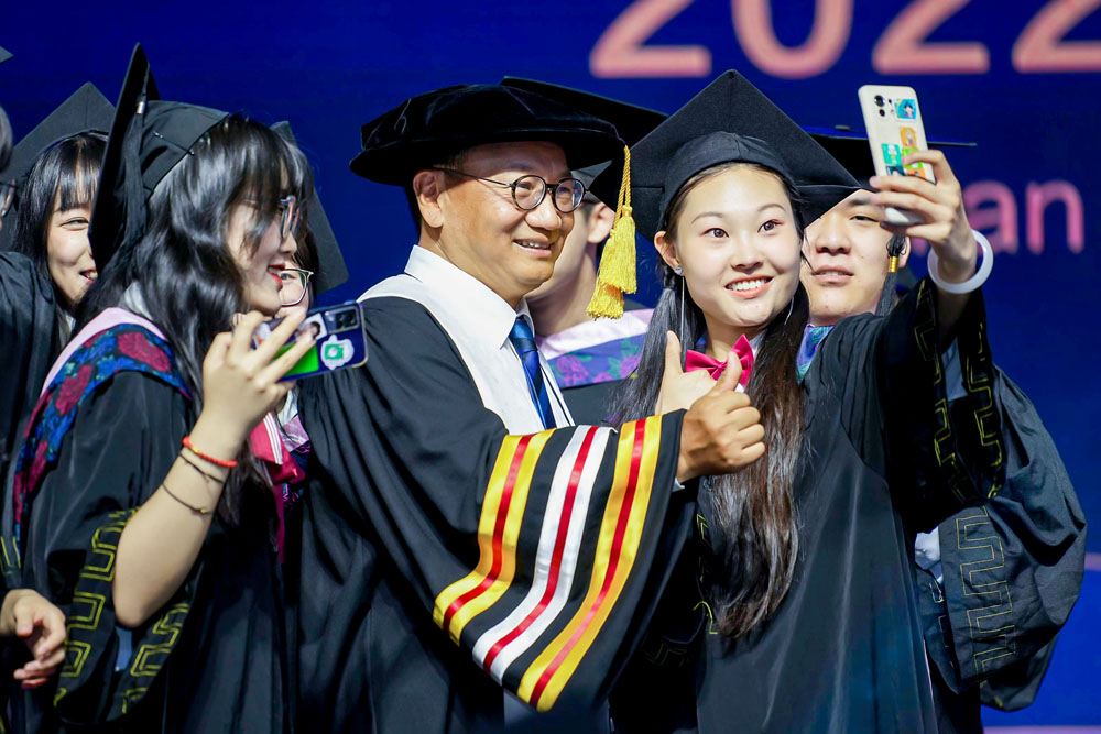 “心怀利他主义、坚持长期主义、建立特殊使命”,这就是欧亚的办学理念,也是我对同学们的临别寄语。感谢你们选择了欧亚,感谢你们对欧亚的热爱,由此开始,随处可往!(掌声)
