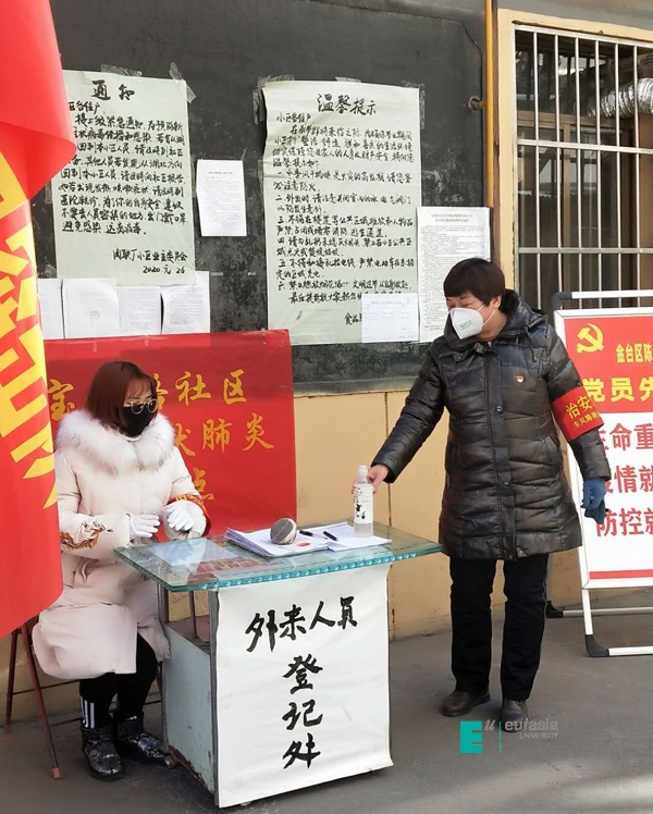 在这场防疫志愿工作中,学生党员们协助村干部统计本村回乡人员信息,虽然天气十分寒冷,但他们并无任何松懈,始终坚持在岗位,对进村的外来人口、车辆进行仔细询问和排查。凌冽的寒风中,每一个关卡,拦住的是瘟疫,留下的是人间大爱。