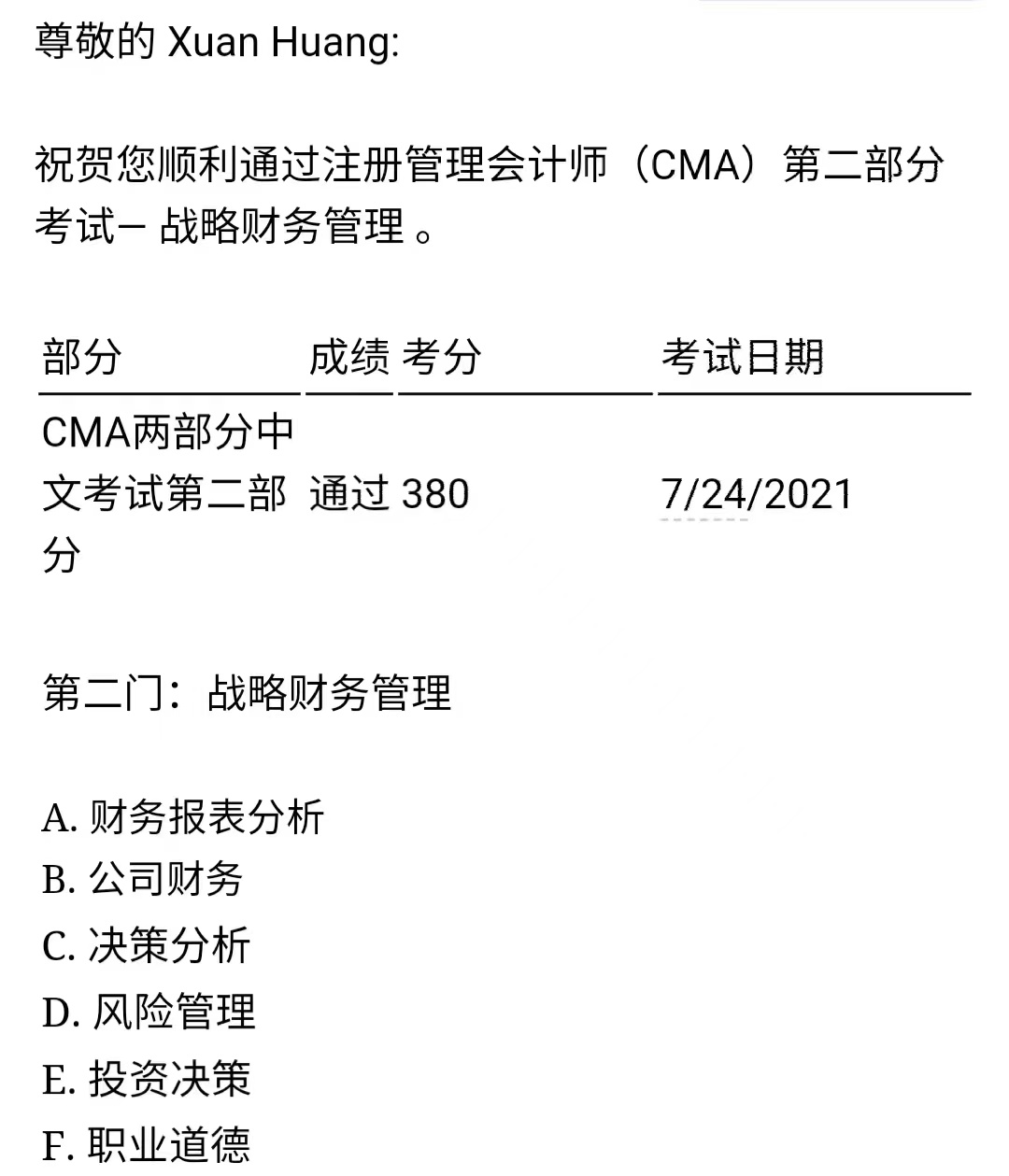 2021年度CMA奖学金获得者黄玄及林祈瑶均已顺利通过CMA全阶段考试。