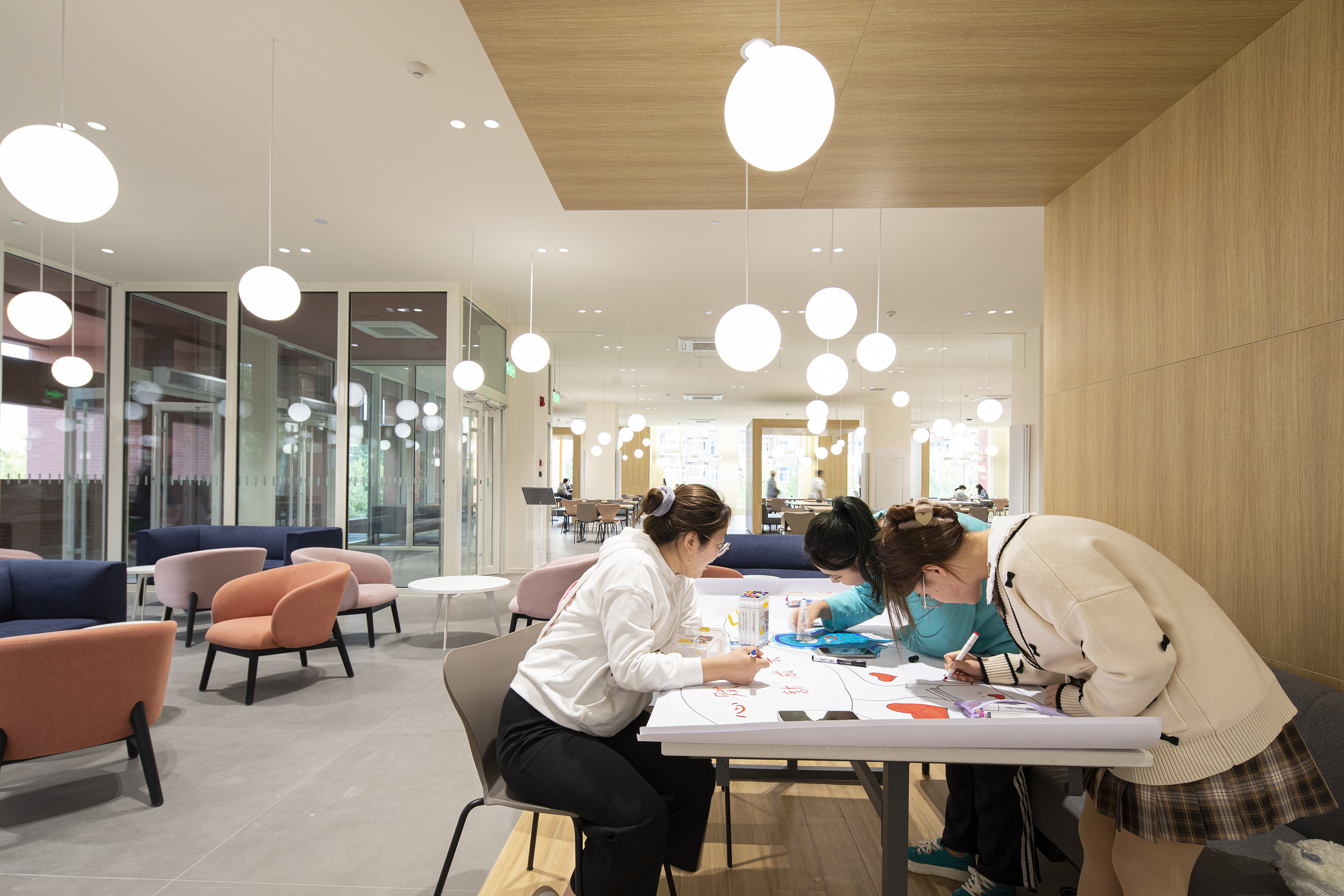 在欧亚,学习不止发生在课堂上,还发生在你参加的社区、社团活动中。8个各具特色的文化社区, 85个学生社团,将为同学们搭建彰显个性、展现风采的舞台。欧亚倡导环境育人,教育空间生活化,生活空间学习化,校园里随处可见的非正式学习场所,让同学们可以实现无处不在的学习。虹桥学生中心集学习、社交、休闲、餐饮、购物等于一体,以创意空间赋能自主学习。