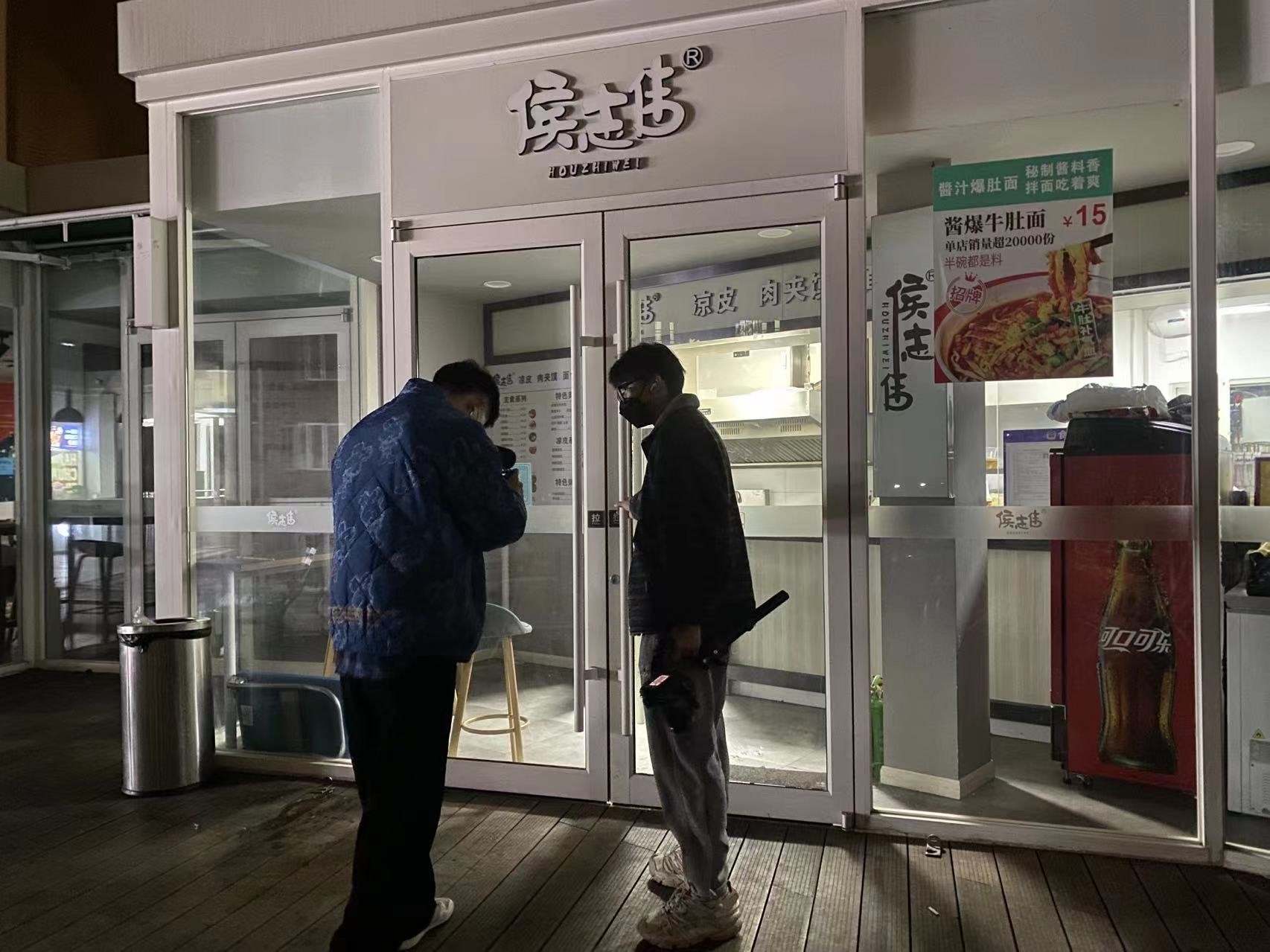 从下午六点到晚上十二点,他们的镜头呈现了医护人员的辛劳,采访了学校的物资储备,记录了餐饮商户的休憩,直至捕捉到东门安保大叔在黑夜中跳动以抵御寒冷的最后一个镜头,一天结束了。