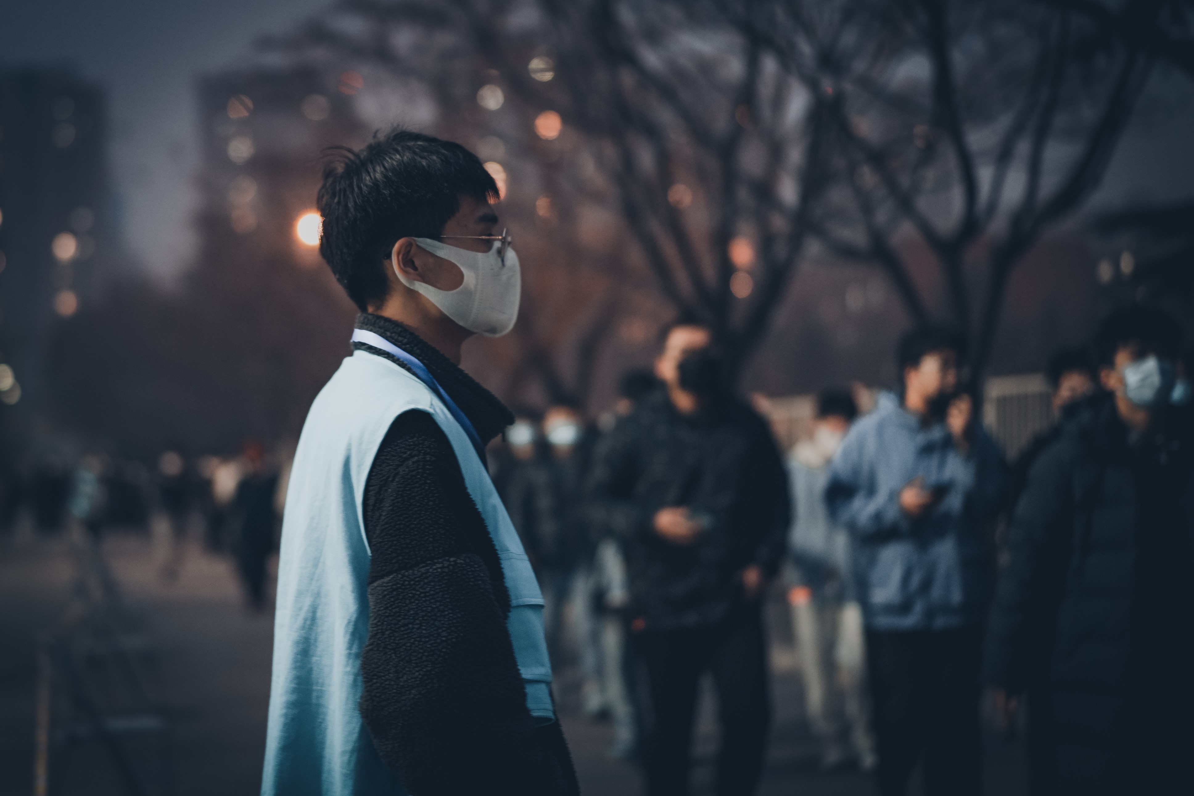 拍完退役军人帮助防疫工作者们搭帐篷,下午回宿舍接着上网课,发觉缺少医护人员以及防疫志愿者们的照片素材,又继续扛起相机前往体育馆。