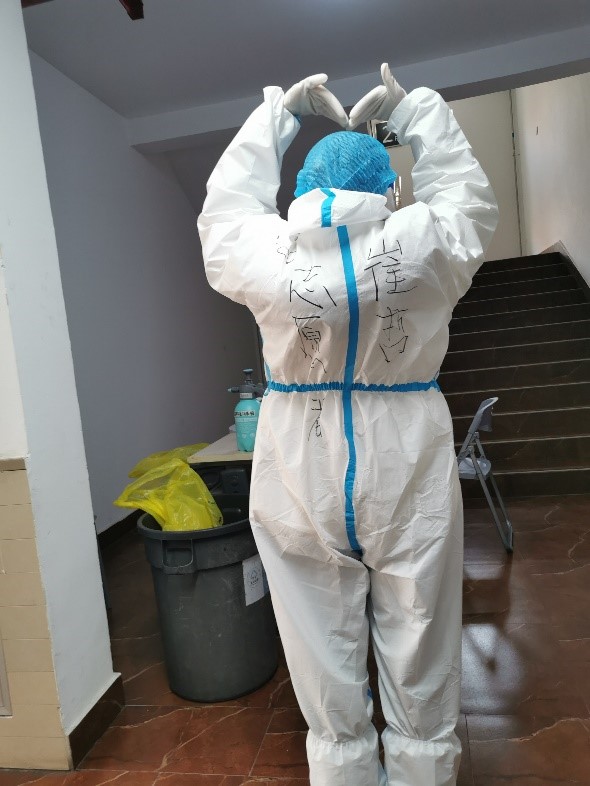 “其实我觉得我的感触还是挺深的,我最想说的一句话就是辛苦你们了!谢谢你们一直为抗击疫情默默奉献的所以人们,是你们让我感受到了国家的力量人民的力量。其实奔赴在一线的人们,他们也是有血有肉的,也是有自己家庭的。但是他们选择了坚守在自己的岗位上,去守护我们。那我们其实也是有责任的,我们也应该担起自己的责任,去配合他们配合国家。在这次的志愿活动中,我也听到了一些谩骂的话一些负能量的话。我想告诉那些负能量的人们,其实我们生活的地方,是一个阳光有爱的地方。所以我们要尽可能的去爱他,我们要去用心的感受他。看到他们的不理解,其实我想说的是,既然他们都选择了守护我们,那我们为什么不能去守护他们呢?”