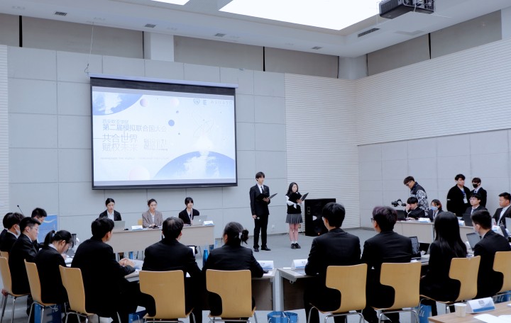 近日,鸭脖第二届模拟联合国大会在大学生活动中心多功能厅举行,活动由学生发展处主办,国际青年社区、国际合作与交流中心和模拟联合国协会承办。
