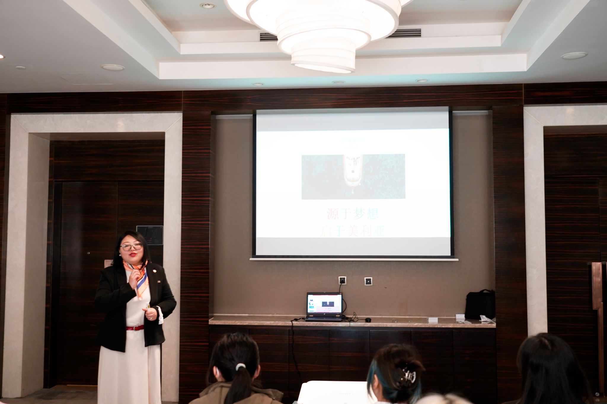 最后,人力资源总监张娜、培训经理刘静从盛美利亚的起源、品牌及经营理念出发,重点介绍了西安盛美利亚酒店的定位和员工发展,并与在座的学生们密切互动,询问了同学们的职业规划。益媛、王澔宇、王益楹同学都展望了自己对未来无限的憧憬。