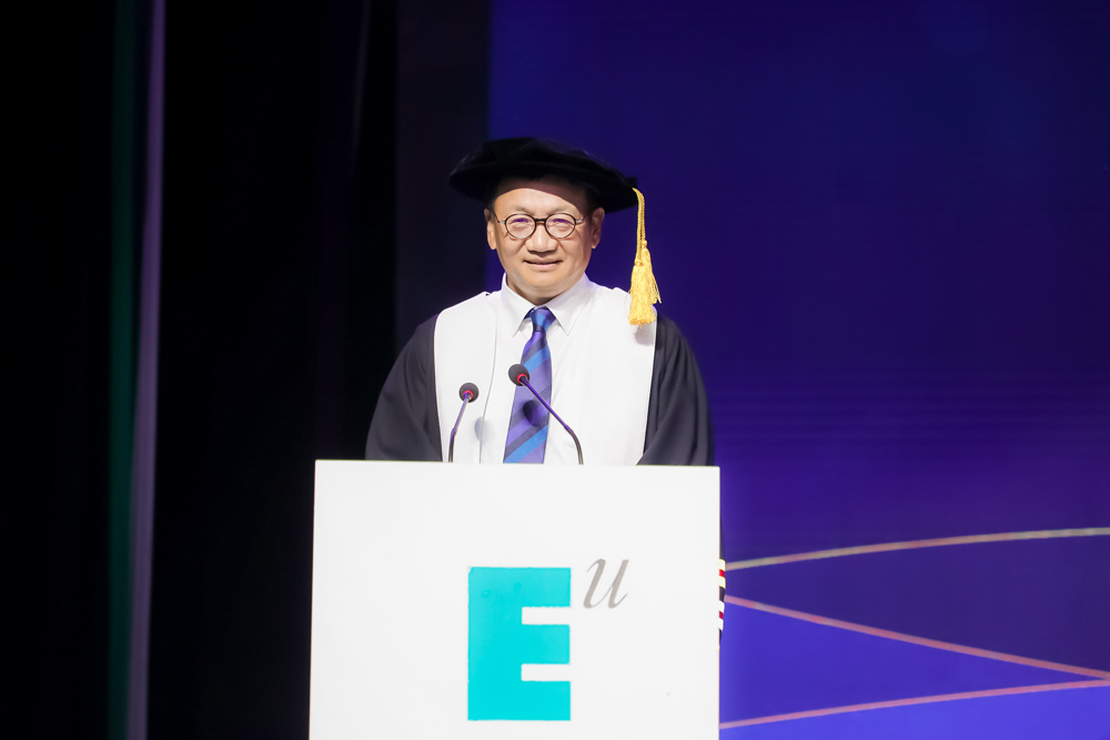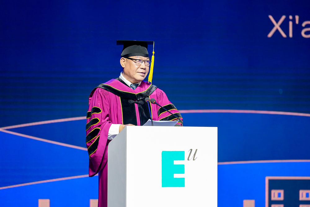 接下来,学校董事长胡建波教授为大家带来最值得期待的的毕业致辞。他说:首先,祝贺诸位毕业生,恭喜你们顺利完成学业。相信你们在欧亚不仅收获了专业的知识,还一定收获了美好的回忆、亲密的友谊,以及具有欧亚气质的坦然和自信。