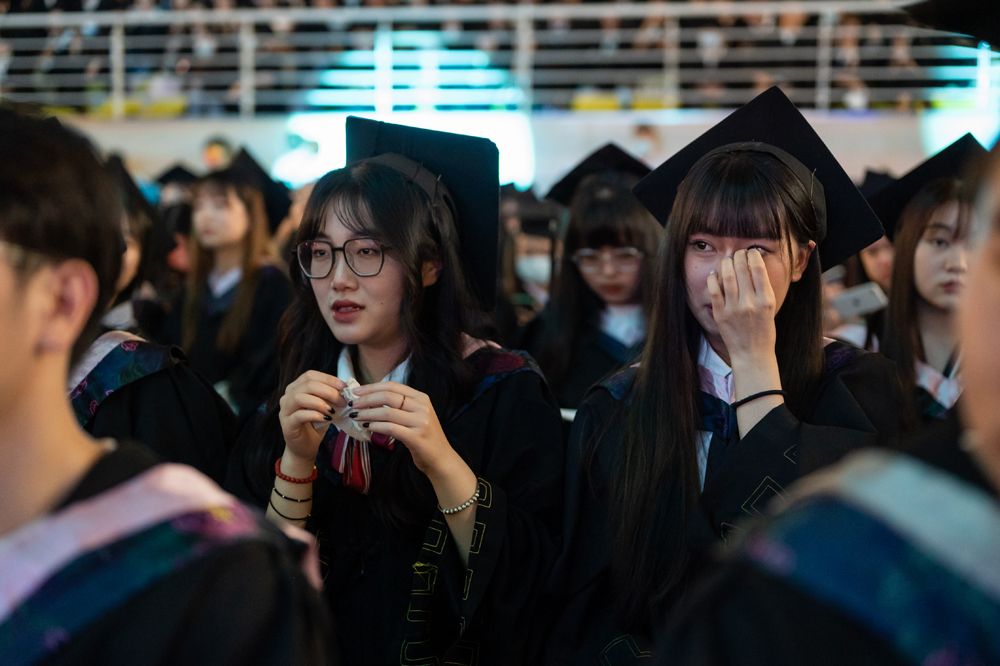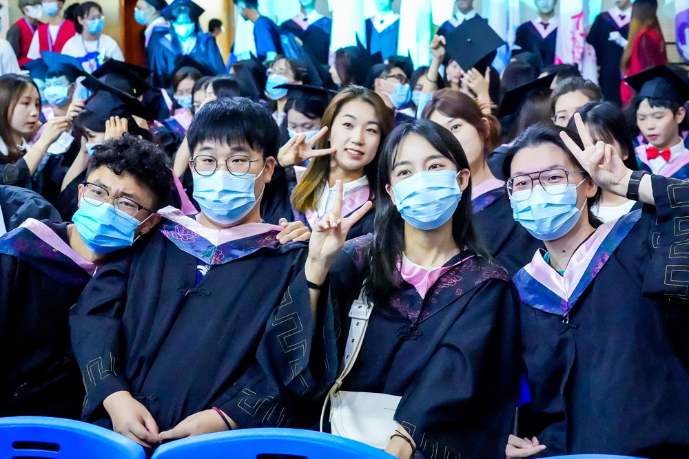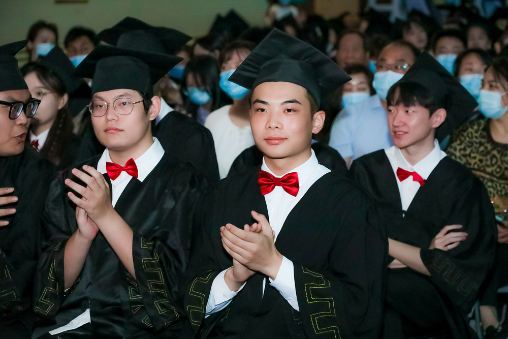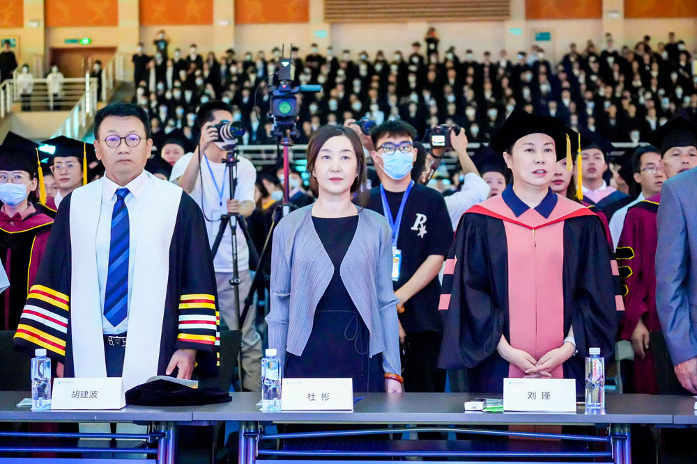 在大家的掌声、欢呼声中,国旗、校旗、分院旗相继入场,雄浑豪壮的中华人民共和国国歌为毕业典礼拉开了序幕。