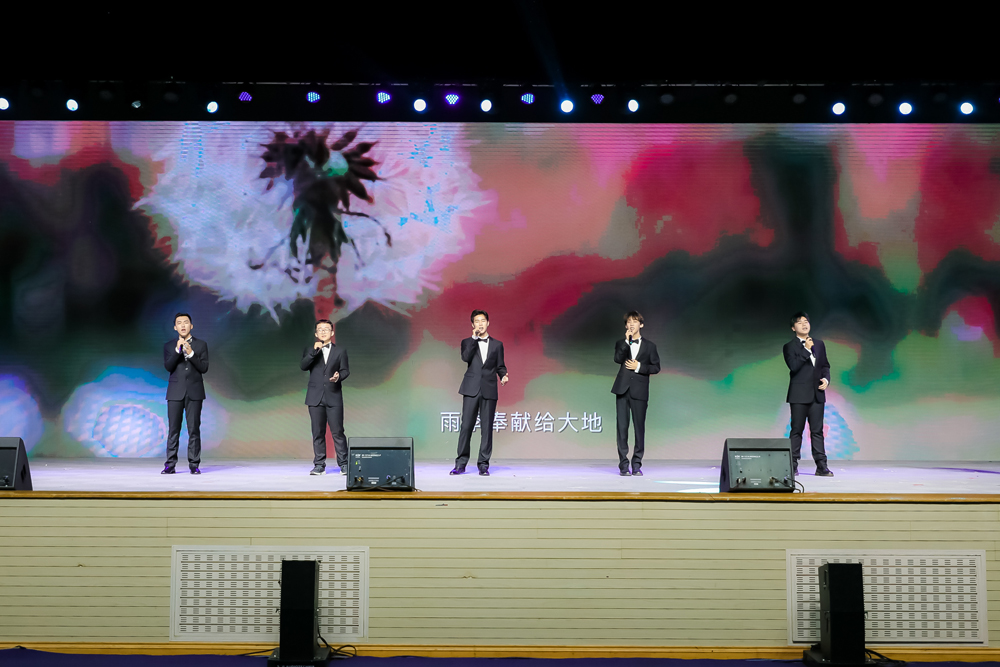 最后,大学生艺术团声乐团的学弟为毕业生们带来合唱《奉献》。跟随着音乐声,欧亚记忆徐徐浮现,他们带来的不仅仅是一首歌,更是对学长学姐们的美好祝福。