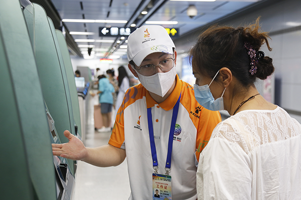 给初到西安的乘客提供准确的方向指引和购票帮助,引导乘客顺利出站,提醒来往乘客出示健康码和佩戴口罩……站厅的无人售票机前、进出站口的闸机旁,站台的候车区,随处可见志愿者们的身影。一句句的标准说明,一遍遍的耐心指引,一次次的温馨提示,看似简单的工作,志愿者们同样需要提前培训,以保证服务的质量更加标准和周到,在面对大客流时,能应对各种突发状况。