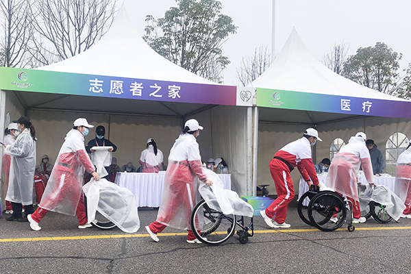 在残特奥会马拉松赛场,他们披着月光出发,在淅沥的秋雨中,帮助残特奥运动健儿搬运物品,加油助威,被运动员们勇于超越自我的意志所感动……