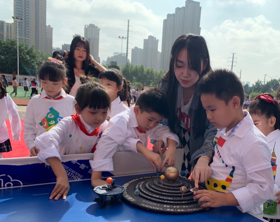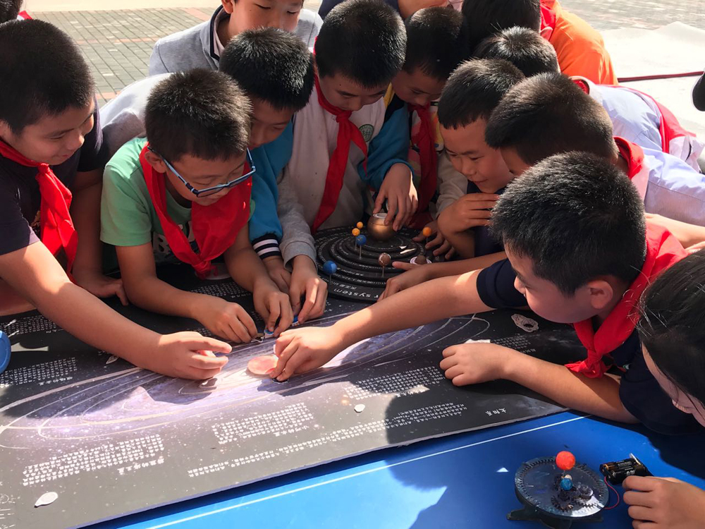 人类对于对宇宙的探索,古往今来从未停止,好奇心旺盛的小学生们更是对宇宙充满了兴趣。小学教育专业的大学生们利用教具,按照距离太阳从近到远的顺序,为给孩子们介绍了八大行星。之后,大学生们让参与活动的小学生们认真观察每颗行星的体态特征、外貌、颜色,并为其讲解。这次“星际之旅”,加深小学生们对每颗行星的认识,对宇宙的探索欲望更加强烈。