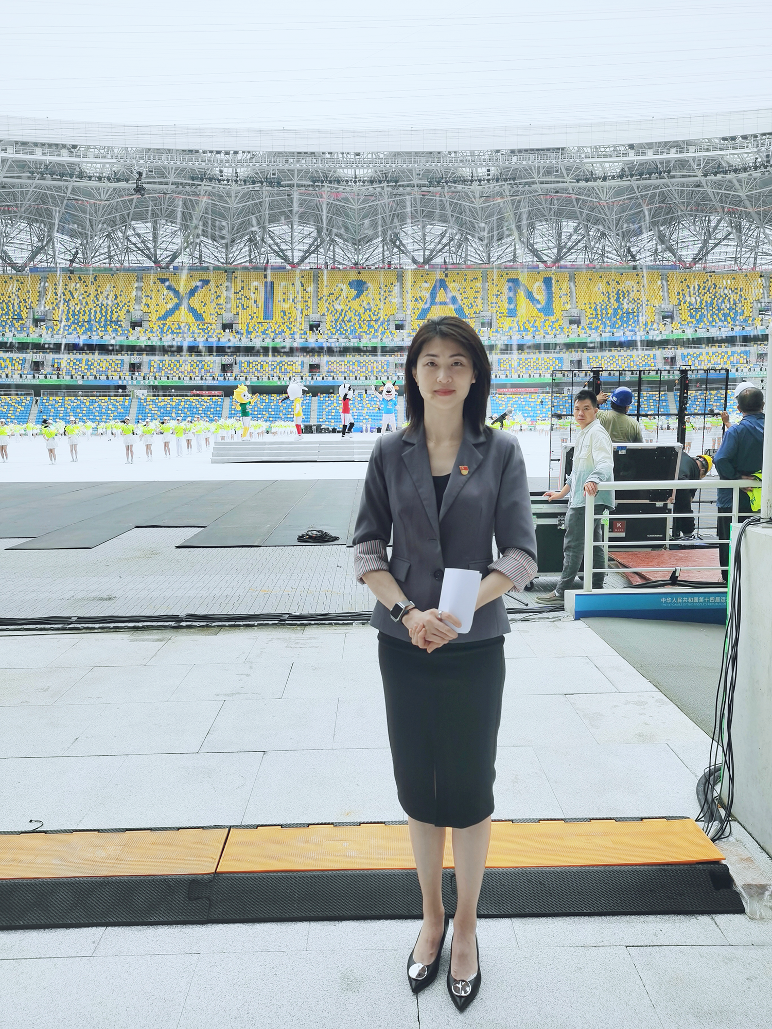 (图二)洪秀岩老师在西安奥体中心体育场彩排现场