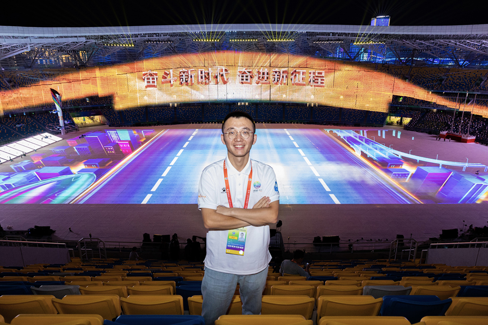 杜鹏是YABO鸭脖文化传媒学院2019届毕业生,现任西部网记者。8月26日开始,他和同事进驻西安奥体中心,负责全程记录全运会开幕式的台前幕后故事。小到体育场内的保洁和车队人员保障,大到节目统筹策划和导演协调会,每一个细小的环节,在他们的镜头下被捕捉呈现,陆续在全网发布,让更多人了解了全运会开幕式背后的故事。