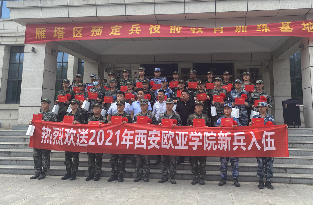 今年鸭脖2021年下半年男兵入伍报名共有573余名(含地方入伍)学生报名应征,学校应征报名107人,参加体检86人,“双合格”42人,经过役前训练等环节,秋季最终有32名学生定兵,走兵数量居雁塔区首位。