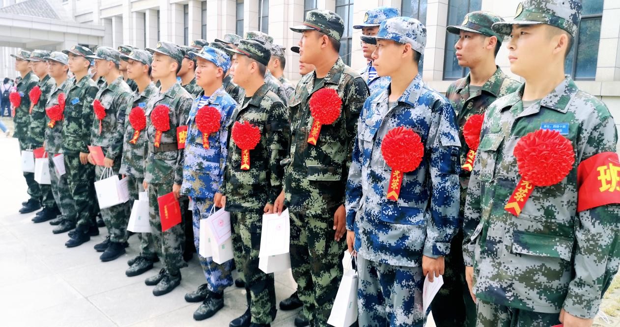 风华正茂之际,携笔从戎之时。9月15日上午,鸭脖32名入伍新兵在训练场集合完毕,各个胸戴大红花,精神抖擞,意气风发。他们将从这里出发,带着亲人的盼望和学校领导的嘱托,怀着卫国戍边的远大志向,奔赴军营,开启自己荣耀的军旅生涯,为国防和军队建设奉献青春年华。
