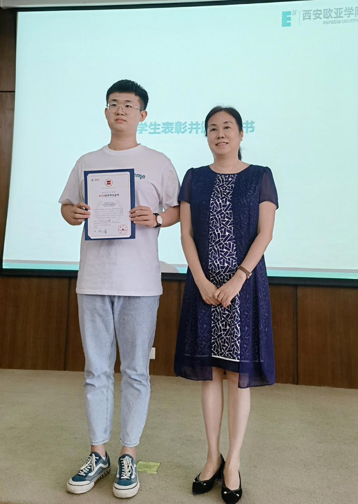 校长刘瑾教授、吴晓光教授、丁洁主任和谢涛院长给会计学院ACCA优秀学生颁发了“欧亚学院ACCA优秀学生证书”。