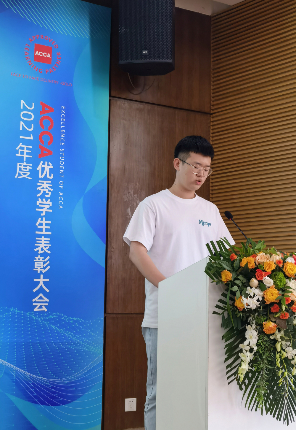 ACCA18级李柯衡同学所学过的ACCA课程全部通过了ACCA全球统考,成为“ACCA特别优秀学生”。受到了学校的表彰和“ACCA特别优秀学生奖学金”的奖励。李柯衡同学作为学生代表在发言中说:“首先,感谢学校以及会计学院给我们提供了良好的教学软硬件条件,让我们在舒适的学习环境下接受优秀的ACCA教育。其次,感谢ACCA中心的老师们,感谢会计学院的ACCA教师们,是你们的ACCA优秀教学质量和完善的ACCA教务管理,使得我们在ACCA的学习道路上可以取得了不错的成绩,获得了今天的荣誉”。李柯衡同学分享他通过ACCA全球统考的心得体会时说:好好学习与ACCA相关的中文课程,好好学习大学一年级的英语。寒假、暑假要花时间加强英语学习,还要预习下学期ACCA的课程。做到了这些,通过ACCA全球统考并没有想象的那么难。他鼓励同学们:“已经选择了ACCA这条路,希望大家可以坚持住,一直走下去。衷心祝愿同学们在ACCA的道路上可以取得一个不错的成绩”