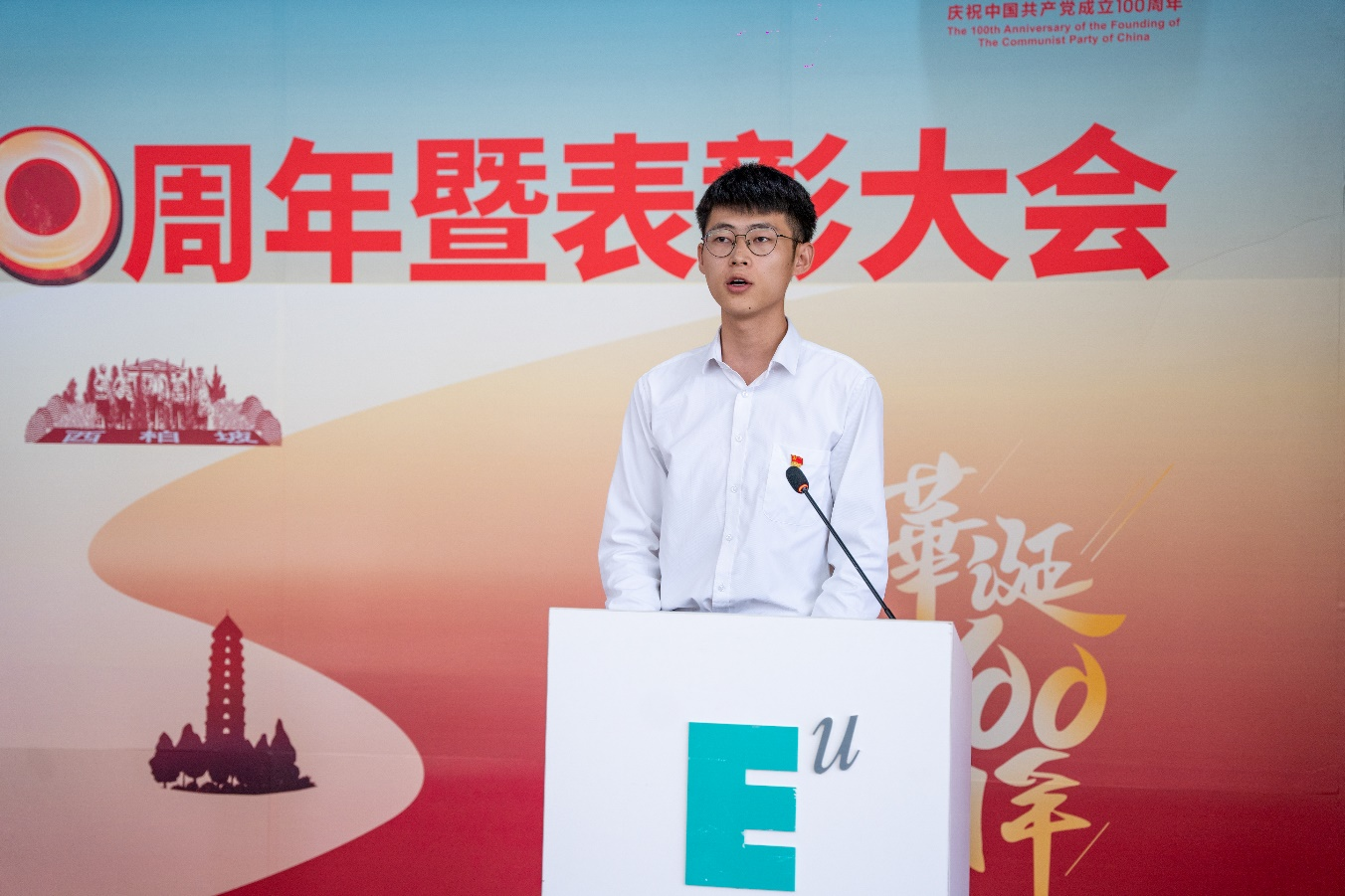 王志强同志宣读表彰决定,经学校党委研究决定,分别授予第二青年社区分党委等7个基层党组织“先进基层党组织”、郭妍等118名个人“优秀共产党员”和谢目丽等18名个人“优秀党务工作者”荣誉称号。于孟晨、刘瑾、王志强同志分别为受表彰的先进集体和优秀个人代表颁奖。校党委委员、校长助理王晓华领誓,全体党员重温入党誓词。先进基层党组织代表、通识教育学院党总支书记、院长黄鑫同志,优秀共产党员教师代表、文化传播学院第一党支部书记曹小娟同志,优秀共产党员学生代表、第一青年社区分党委张腾同志作大会交流发言,分享先进经验和典型事迹。