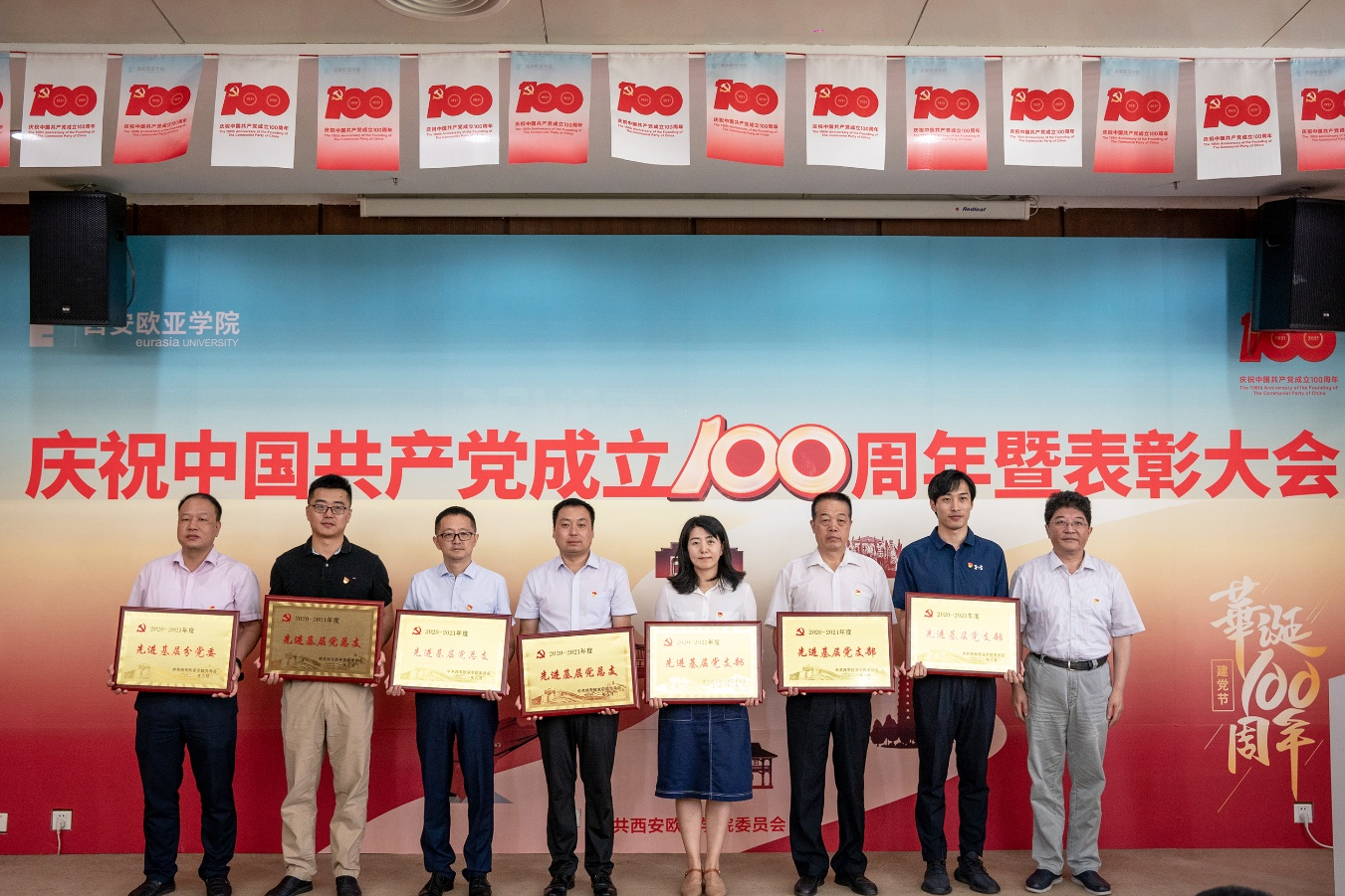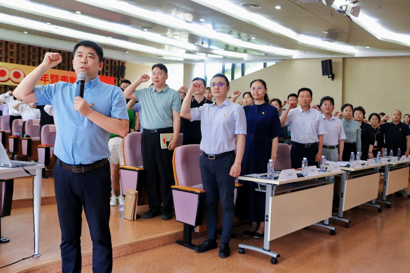 7月8日,学校庆祝中国共产党成立100周年暨“两优一先”表彰大会在图书馆学术报告厅隆重举行,校党委书记、党史学习教育领导小组组长于孟晨,校党委副书记、校长、党史学习教育领导小组副组长刘瑾,校党委副书记、纪委书记、党史学习教育领导小组副组长王志强,学校党政领导、党委委员、纪委委员,以及各基层党组织书记和师生党员代表,受表彰的先进集体和优秀个人代表等共计200余人参加大会。大会由校纪委委员、副校长张军宏主持。