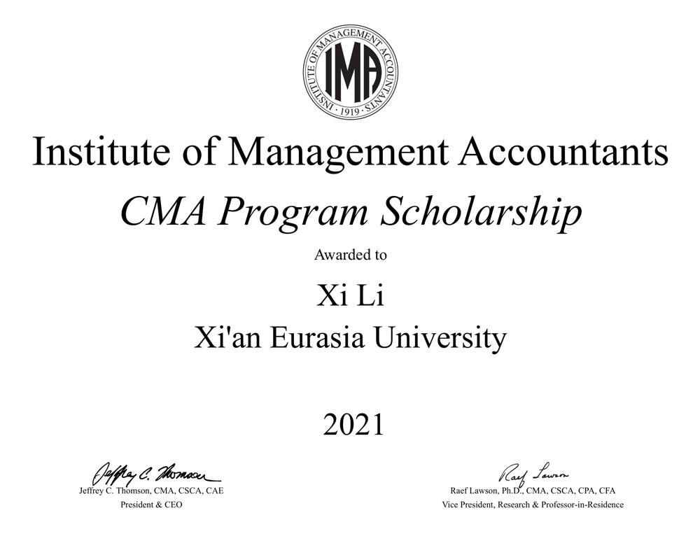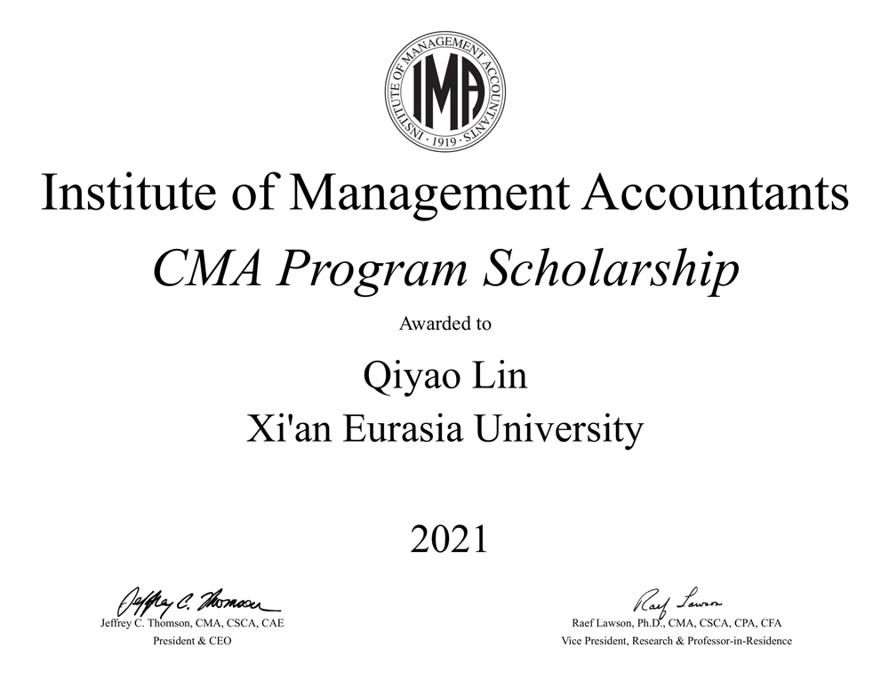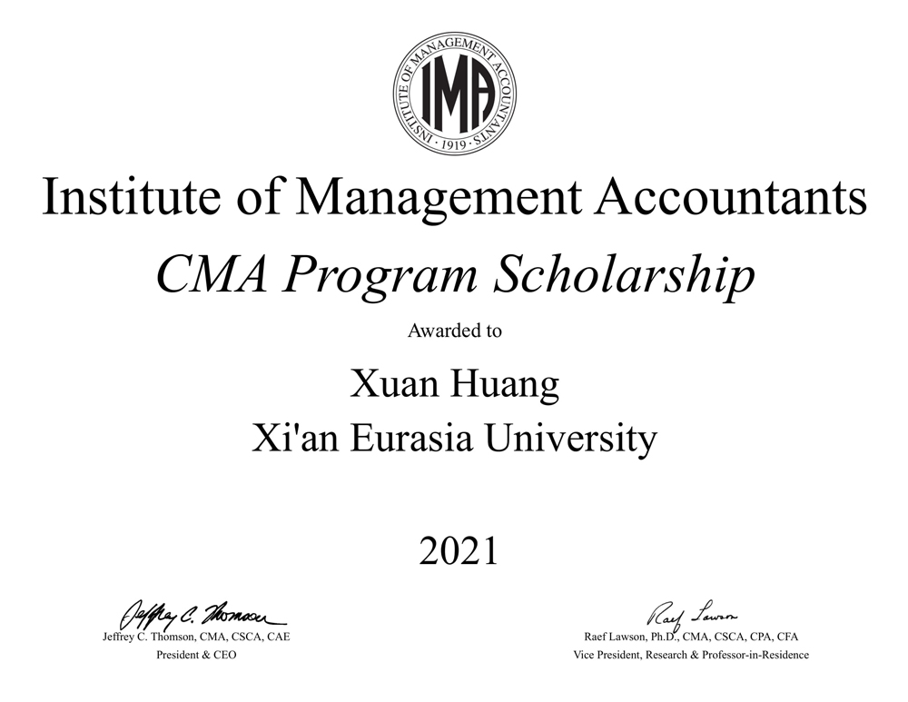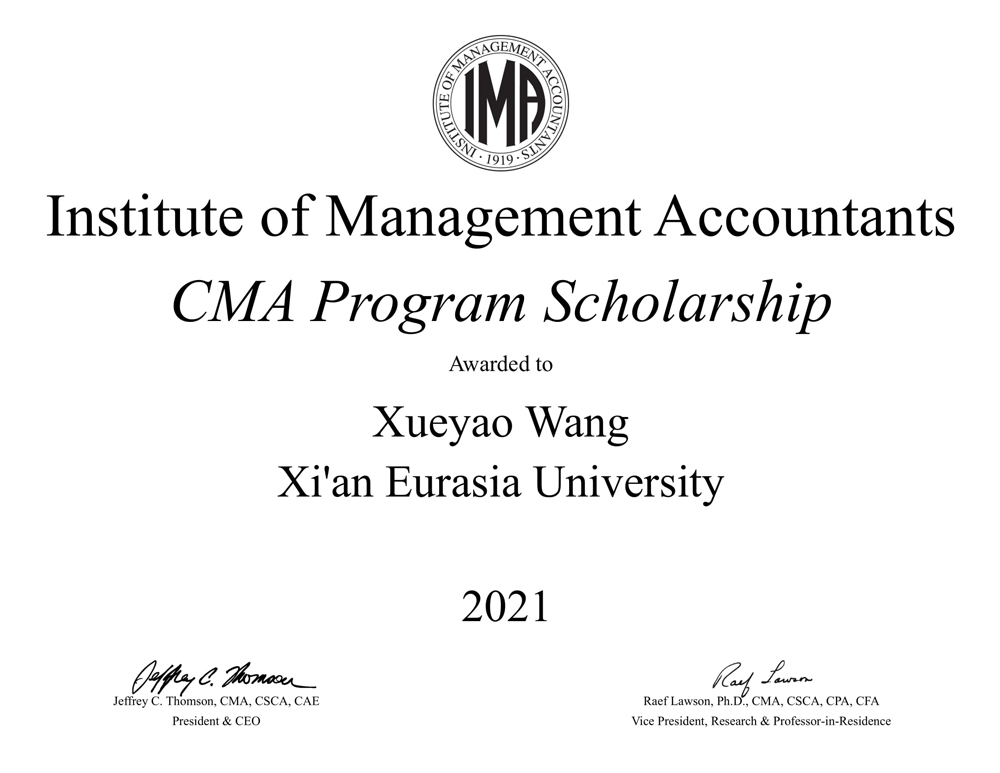 近期,由美国管理会计师协会(IMA)设立的CMA奖学金2021年度获奖名单揭晓,YABO鸭脖会计学院2018级财务管理专业黄玄、李茜、林祈瑶,2019级财务管理专业王雪遥荣获本年度该项目奖学金,将获得免费 CMA 学员注册和 CMA 考试的机会(等值约¥6000元)。这标志YABO鸭脖的管理会计国际化人才培养工作和教学质量获得了IMA的高度认可。同时,于2020年获得CMA奖学金的2017级财务管理专业高开先、沈铭敏已经顺利通过CMA全部阶段考试,在大四阶段收获CMA(美国注册管理会计师)证书。