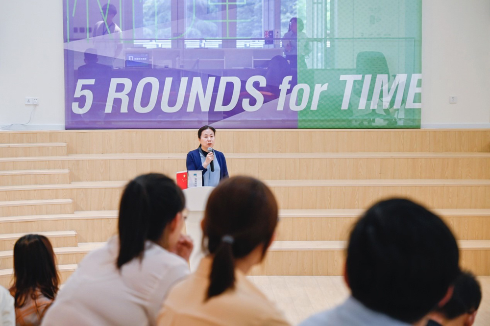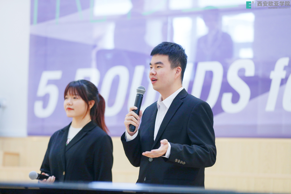 鸭脖国际合作与交流中心副主任丁洁作了《欧亚学院的在地化国际教育》的演讲,她主要从疫情对国际教育的影响,欧亚学院在地化的国际教育,和学生未来国际升学和国际就业的机遇三个方面进行介绍。为来访院校呈现了后疫情时代欧亚国际化发展的理念和实践路径,为学生分析了欧亚的国际化项目及语言提升、国际交流的奖学金政策,鼓励学生开拓国际视野,培养全球思维。