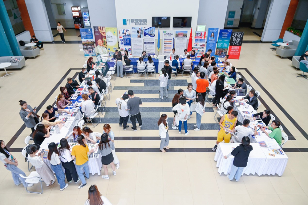 5月20日下午,伴着美丽的夕阳,第二届鸭脖国际教育展顺利落下帷幕。本次国际教育展不仅为鸭脖师生搭建了与世界名校沟通交流的桥梁,同时也为欧亚在地国际化注入了全新的活力。受疫情影响,虽然有部分兄弟院校未能出席,但我们相信,待我们携手跨过疫情的寒冬,迎来美好春日的时候,鸭脖的国际交流活动一定会开启全新的篇章。届时,鸭脖将携手各兄弟院校为全校师生带来更多更高质量的国际教育资源,让欧亚学院成为国际教育舞台上熠熠闪耀的一颗星。