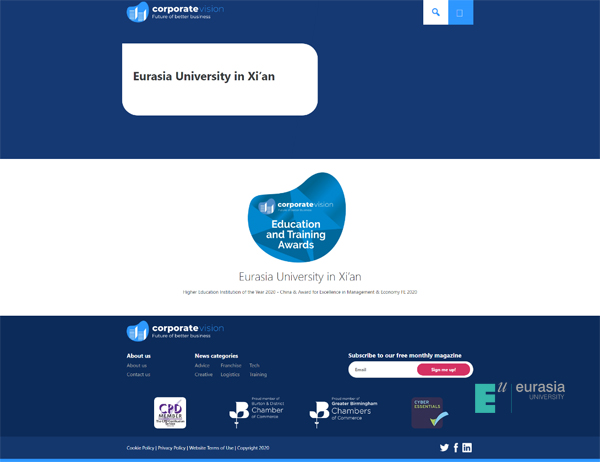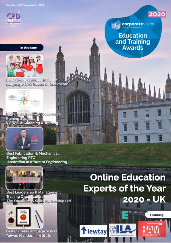 《企业愿景》杂志(Corporate Vision Magazine)作为英国权威的商业财经杂志,其读者群涵盖全球,拥有全球超过17万订阅者,包括来自欧洲、美国、非洲、亚洲等地的顶尖企业专家和各领域的领导人物。本年度全球教育与培训大奖(Education and Training Awards)授予的奖项和机构还有:英国剑桥在线教学(Cambridge Education Group – Digital)荣获2020年度网络教育专家(Online Education Experts of the Year 2020)”,瑞士洛桑大学(ECAL/University Of Art And Design Lausanne)荣获“2020年度艺术设计高等教育大奖(Art & Design Higher Learning Institution of the Year 2020)”等。