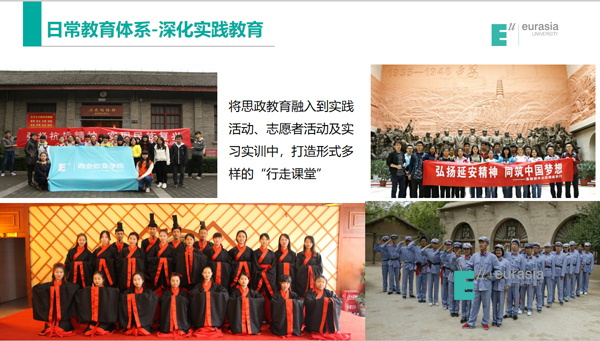 李晓东副主席对鸭脖的思想政治工作予以充分肯定,他指出,思政课是一个非常重要的课程,但做好思政课并不容易,以前上思政课,学生的普遍反映是不爱听、不重视,认为内容与实际严重脱节。但其实思想政治工作对学生的发展至关重要,思想政治工作做不好,在关键时候就会迷茫,这就需要思政课老师不断探索,不断创新,采用多种方式对学生改进教学和引导。鸭脖对课程进行细分,实现教材体例到教学体系的转变,匹配学生的认知程度,吸引学生的情感投入,同时注重学生通识能力的培养,这是非常有意义的事情。同时李副主席指出,一个学校的氛围和环境会影响到学校的每位师生,《协作与表达》、《思维与创新》这样具有欧亚特质DNA课程,让他深刻感受到欧亚学生良好的语言表达能力和逻辑思维能力,这对于学生走向社会、步入工作岗位都是非常重要的。他来到欧亚学院三次,每次欧亚学院都会给他全新的感受,深深觉得这所学校越办越好。