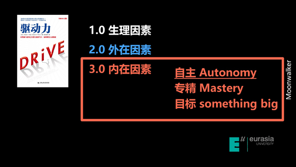自上个世纪以来,组织管理强调控制外部因素,随着外部因素越来越难以发挥作用,如何调动内在因素,实现自我管理成为获取成功的关键。但是,实现自我管理并非易事,美国作家丹尼尔•平克在《驱动力》一书中表明,掌控内在因素,实现内驱动,必须明确自身的自主性、专精及目标。